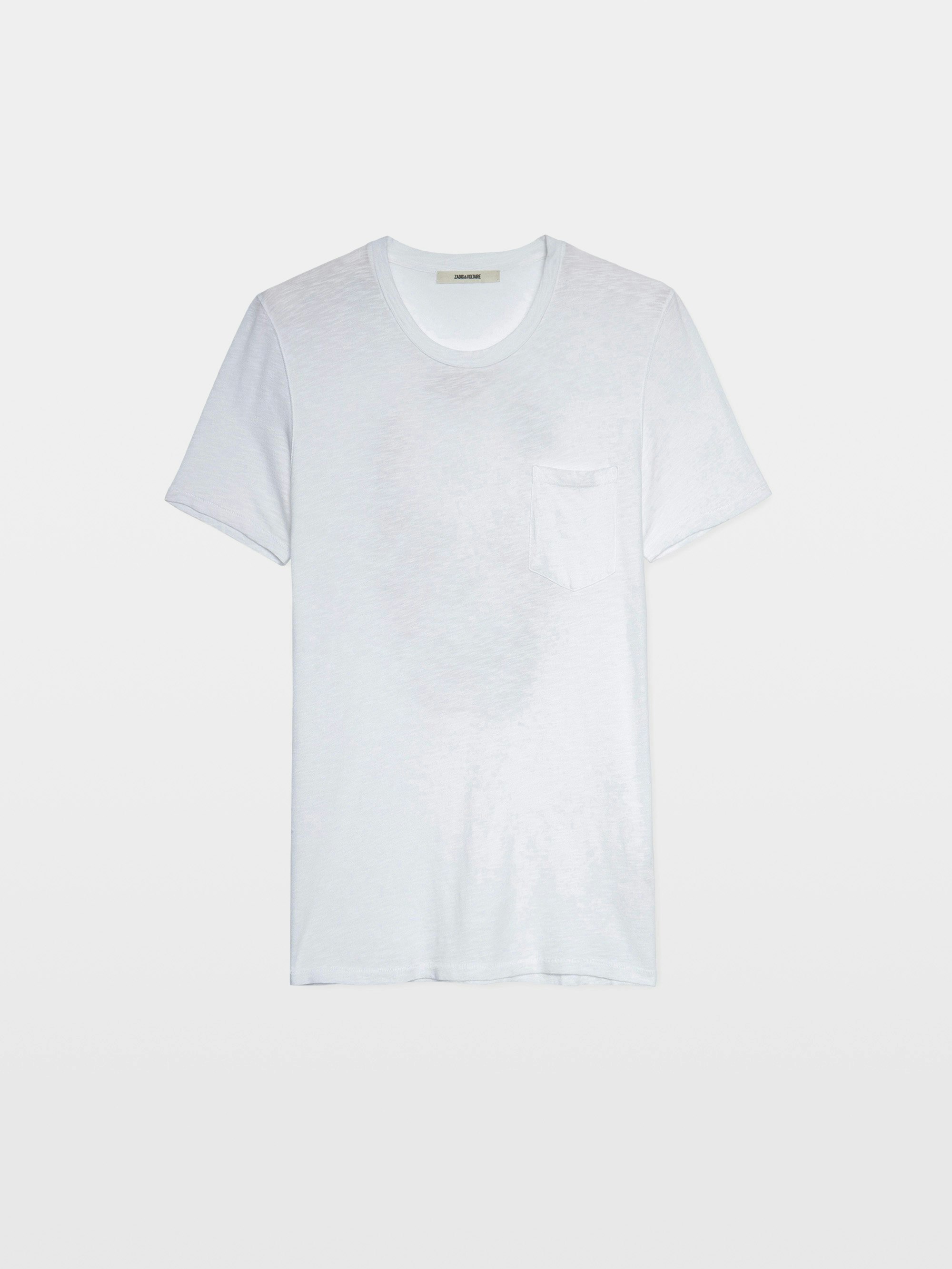 Short-sleeved T-shirt with skull print on the back and front pocket.