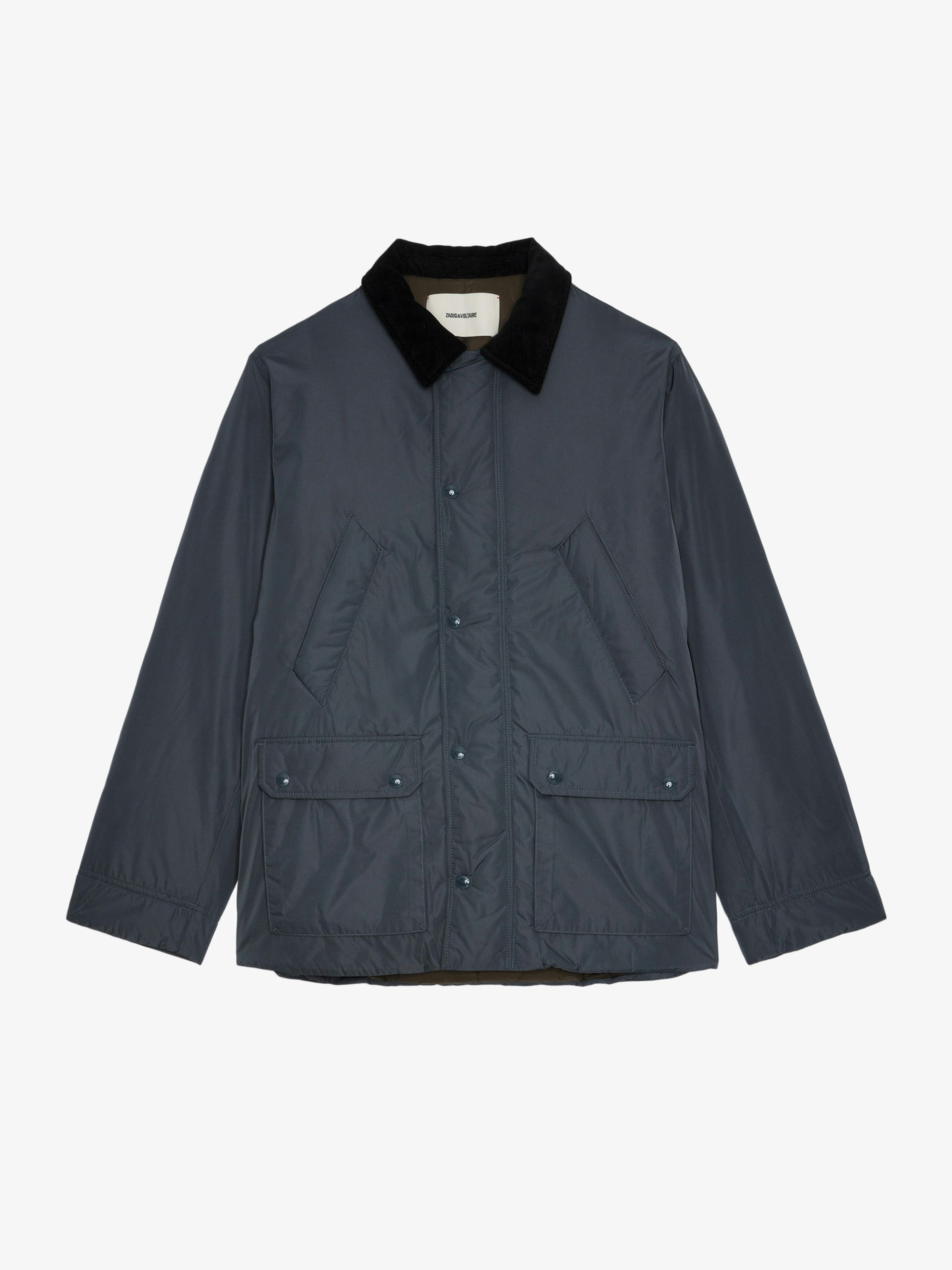 Nylon jacket with corduroy shirt collar and studio crest badge.