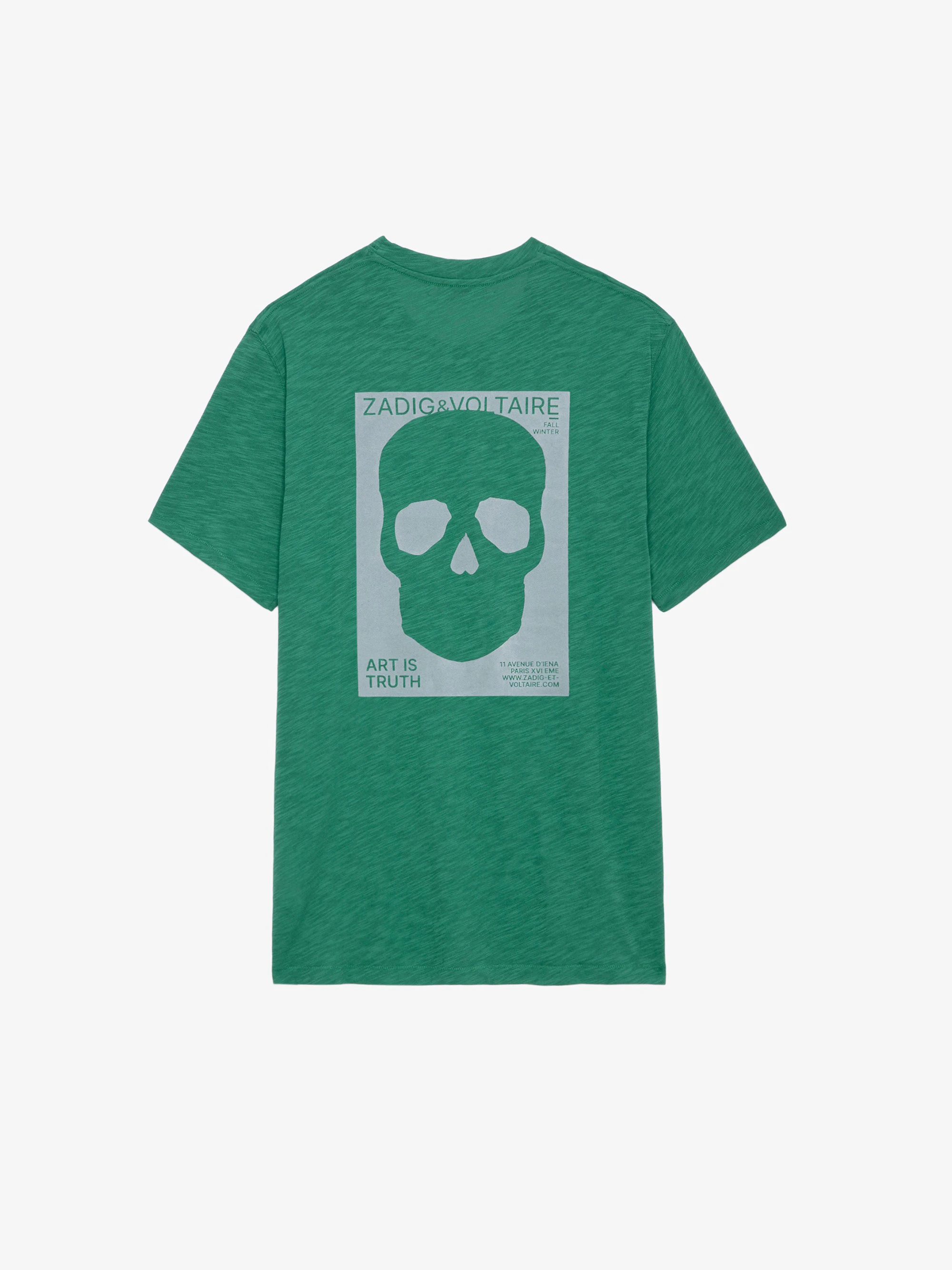 Green slub cotton short-sleeved T-shirt with pocket and Skull Block motif on the back.See more