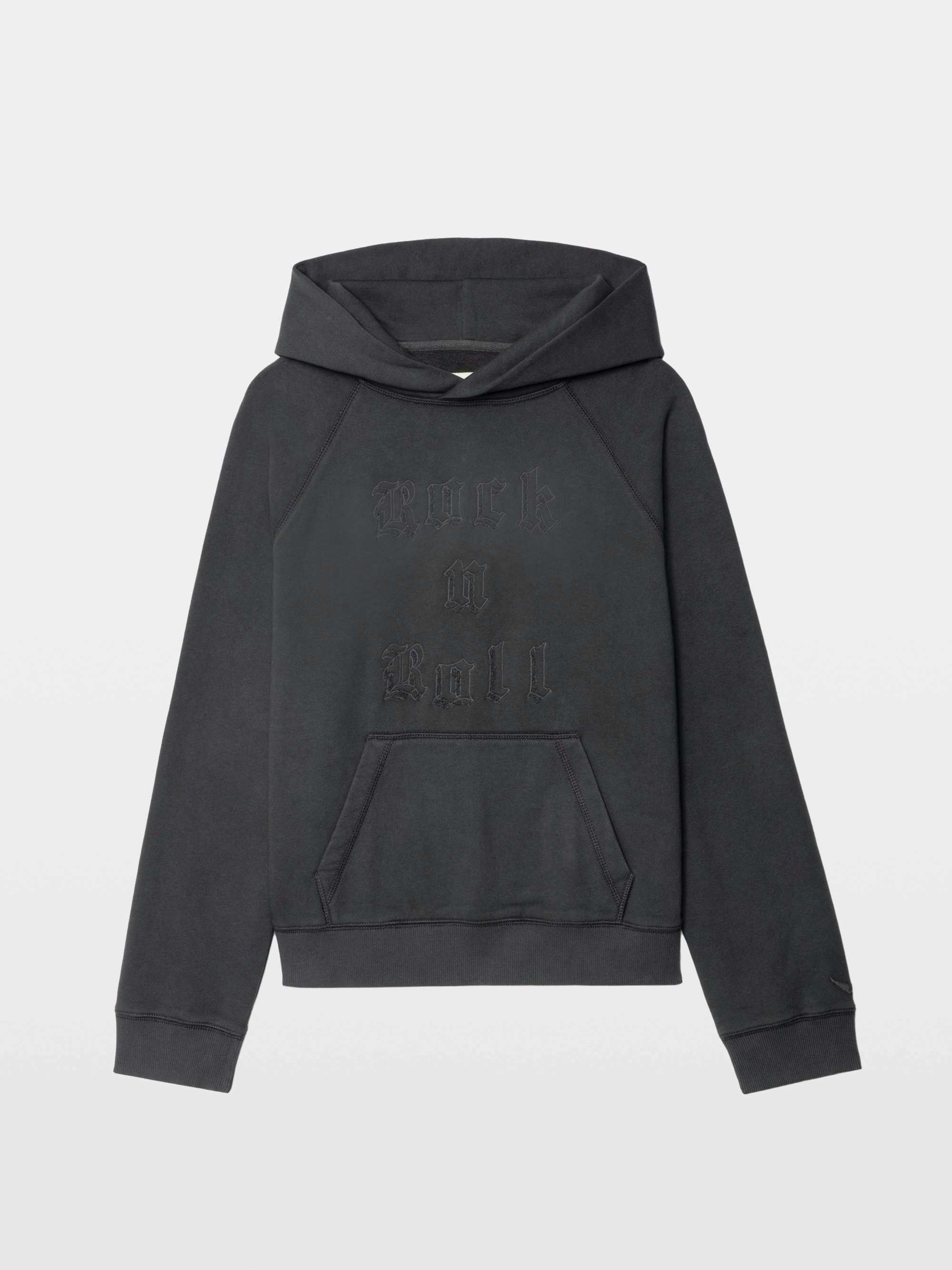 Hoodie with rhinestones and embroidered patch on the front.