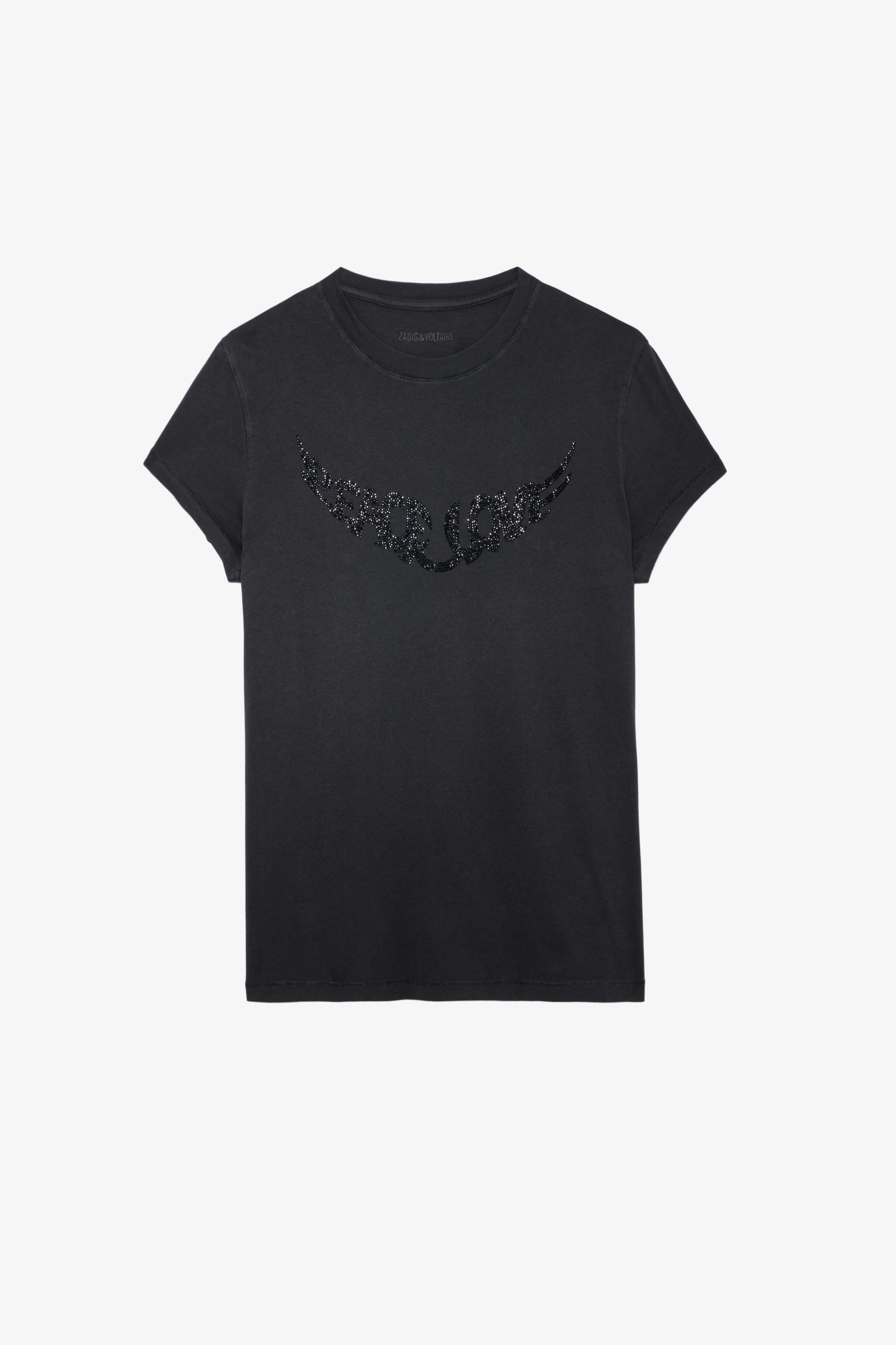 Women’s black cotton sweatshirt with wing-shaped “Peace & Love” slogan.See more