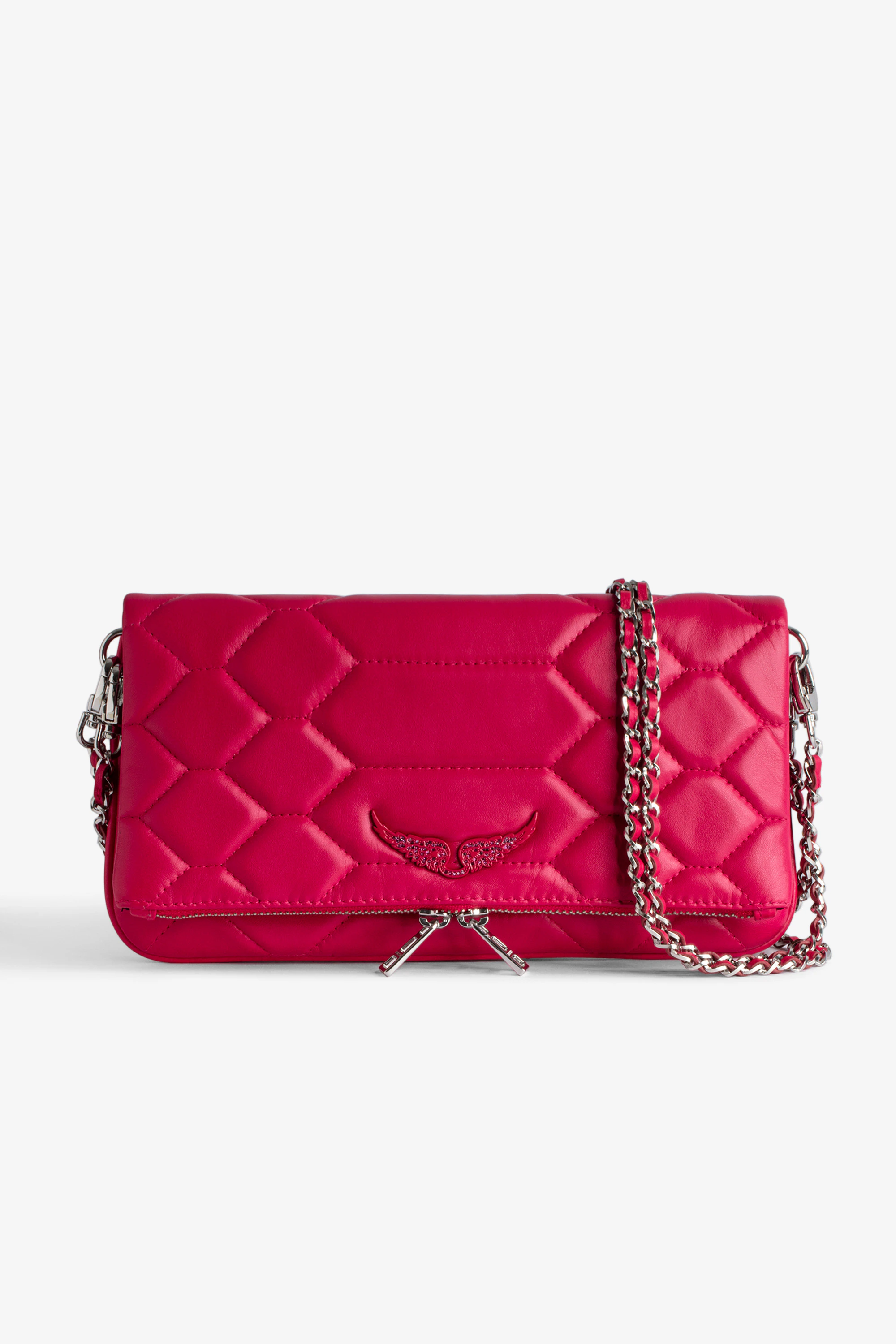 Women’s pink python-effect quilted leather clutch with wings charmSee more