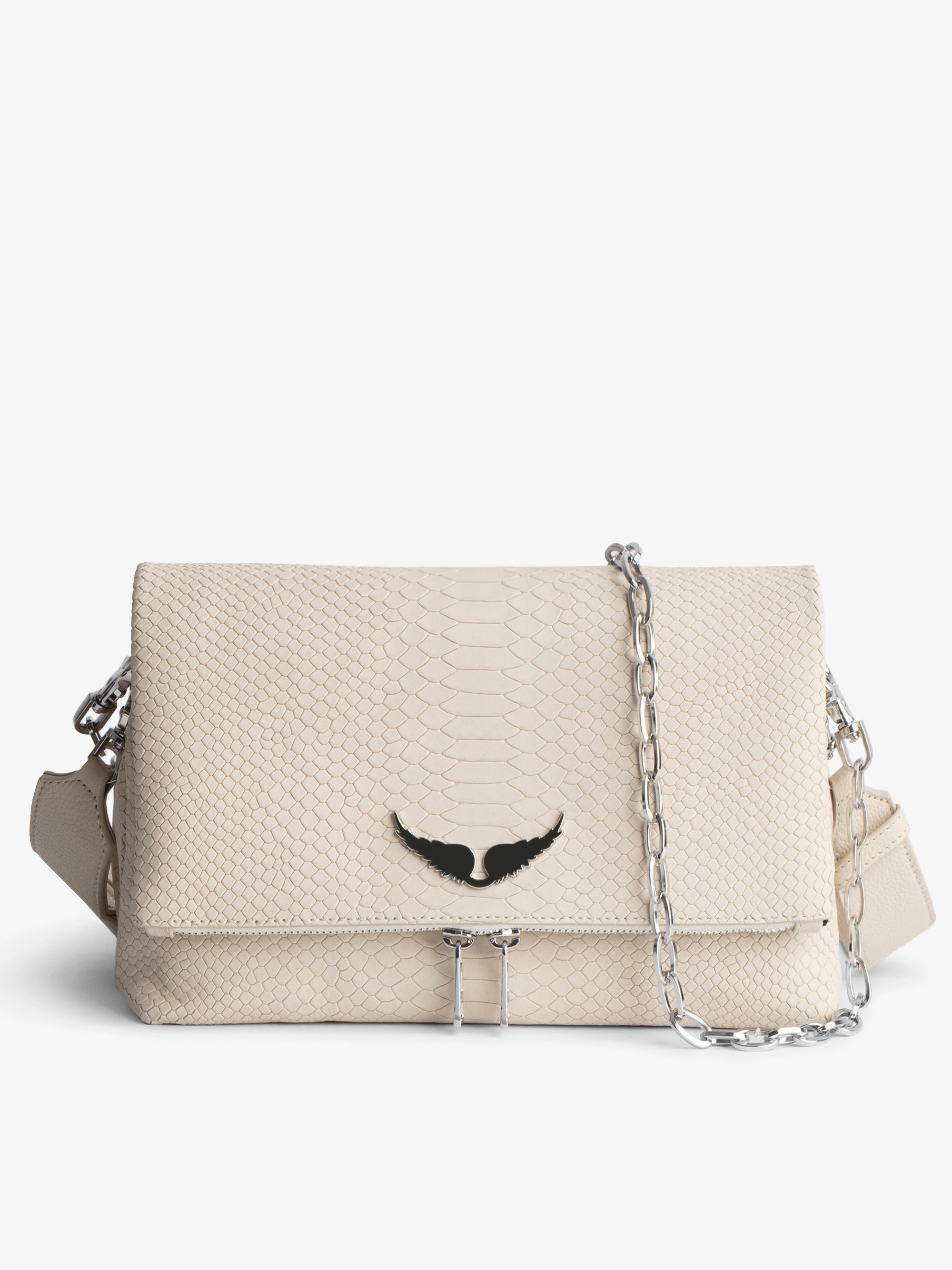 Women’s bag in ecru python-effect leather with a chain shoulder strapSee more