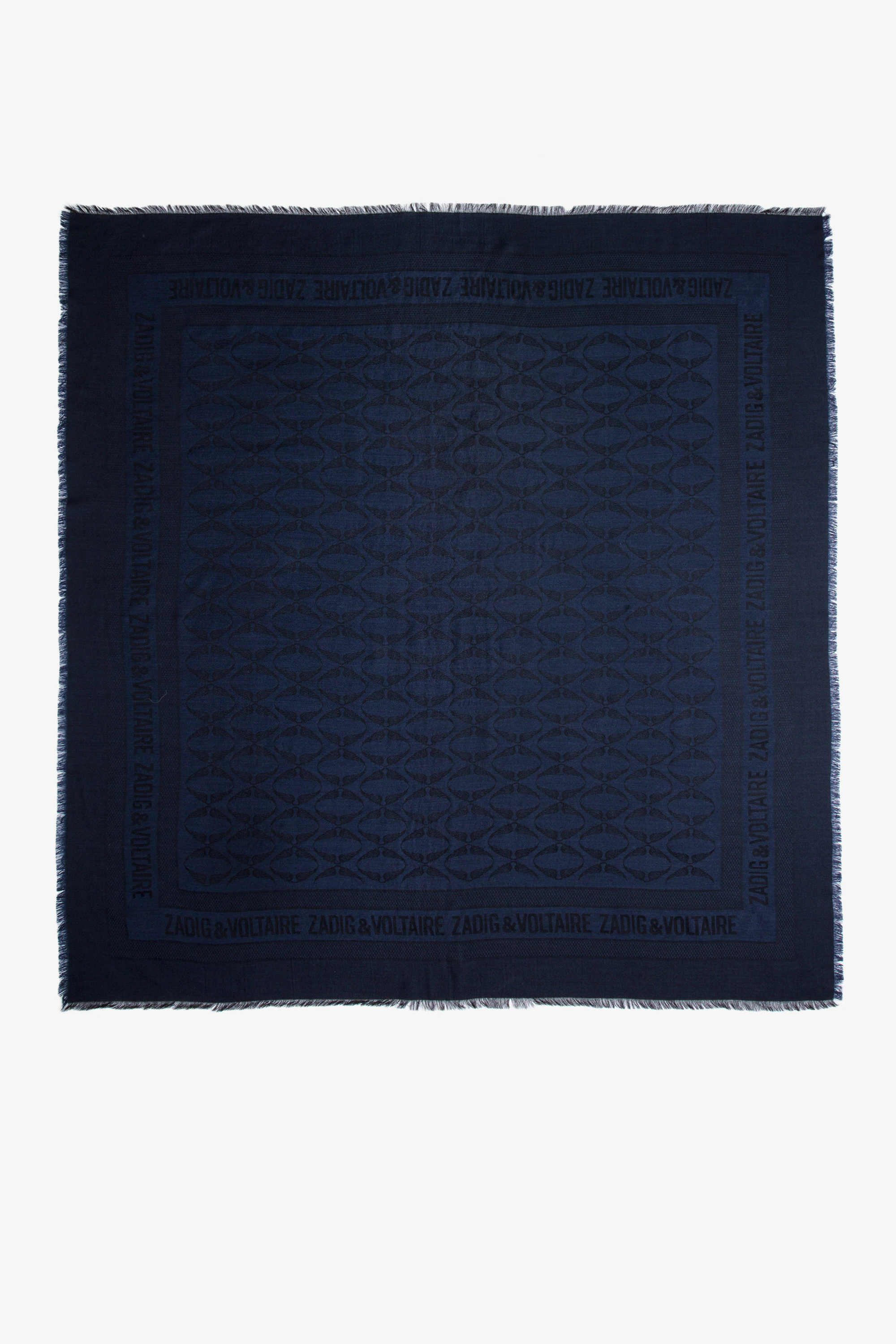 Women’s navy blue rectangular jacquard scarf.See more