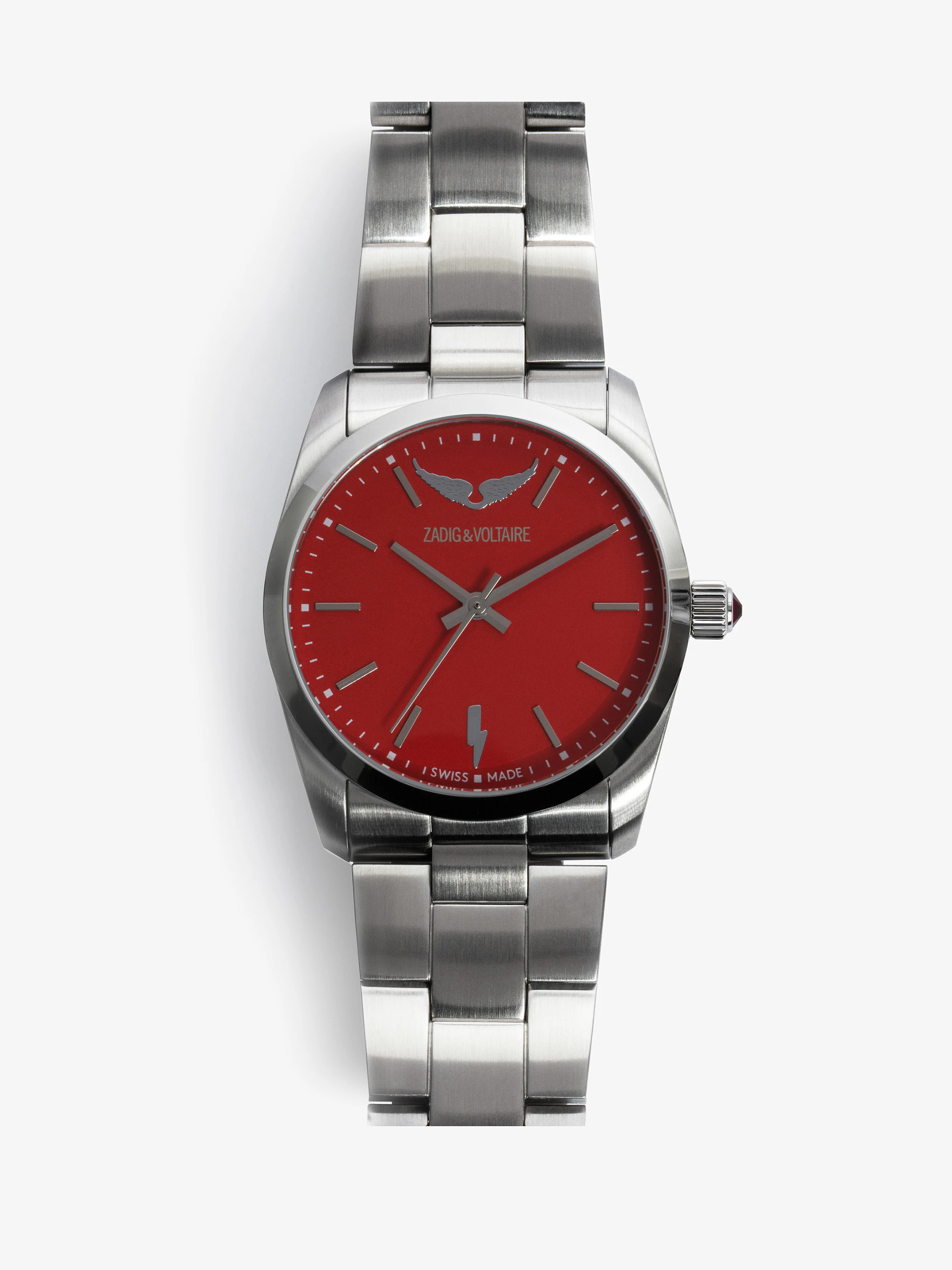 Switch to Zadig&Voltaire time with this stainless steel watch set with a rhinestone, with a matte red face in the signature style of the brand.