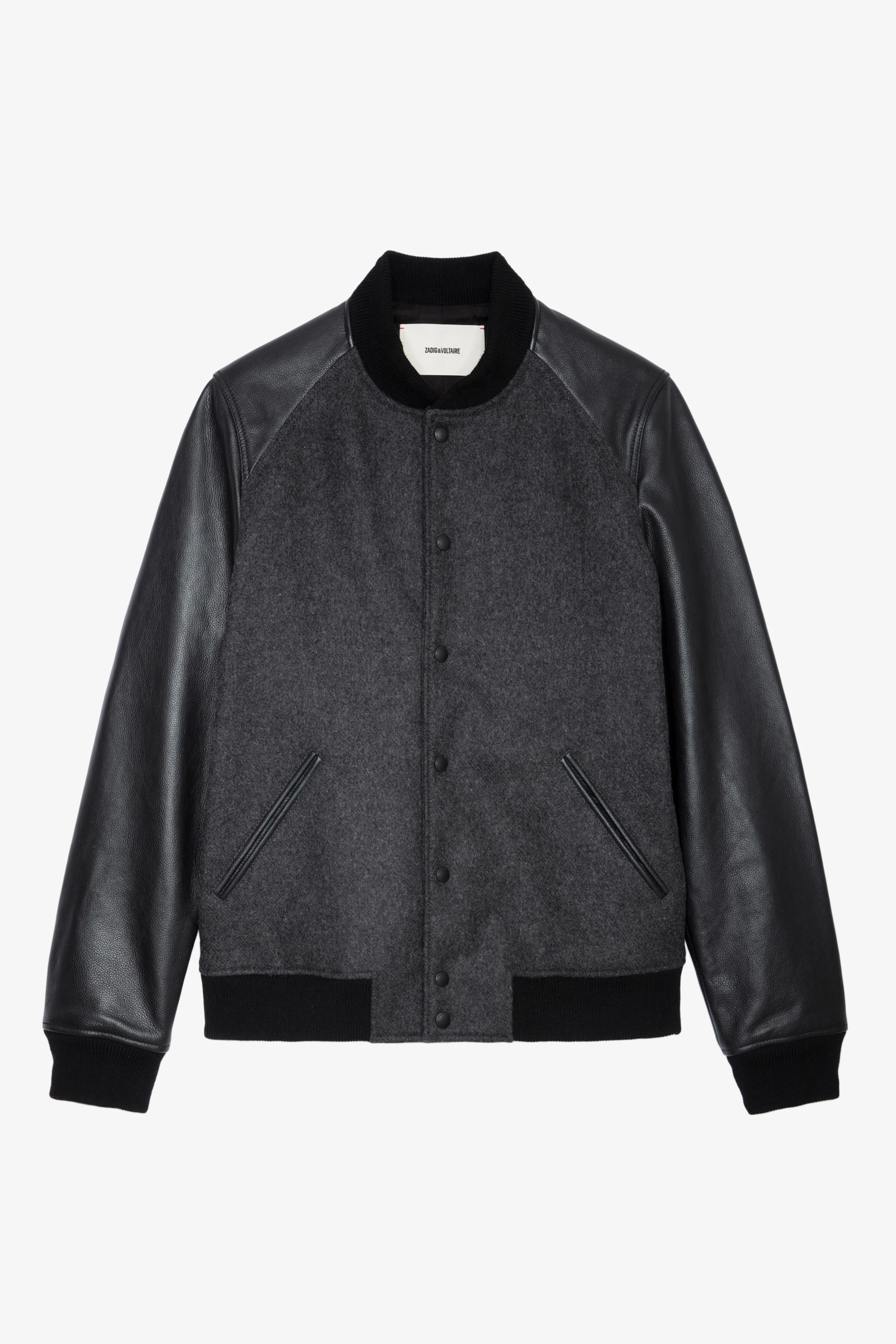 Anthracite leather and wool jacket with a "Voltaire" patch at the back.See more