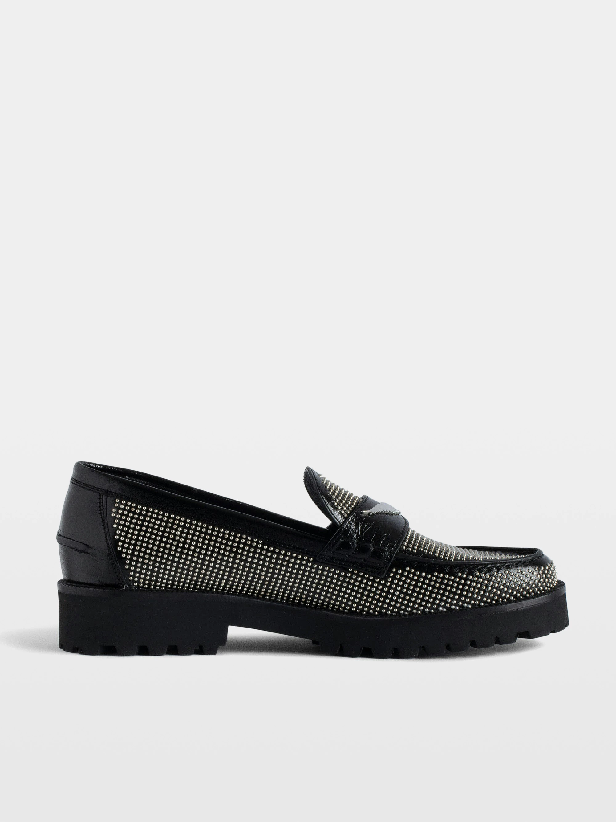 Vintage effect leather moccasins in black adorned with studs and wings signature.See more