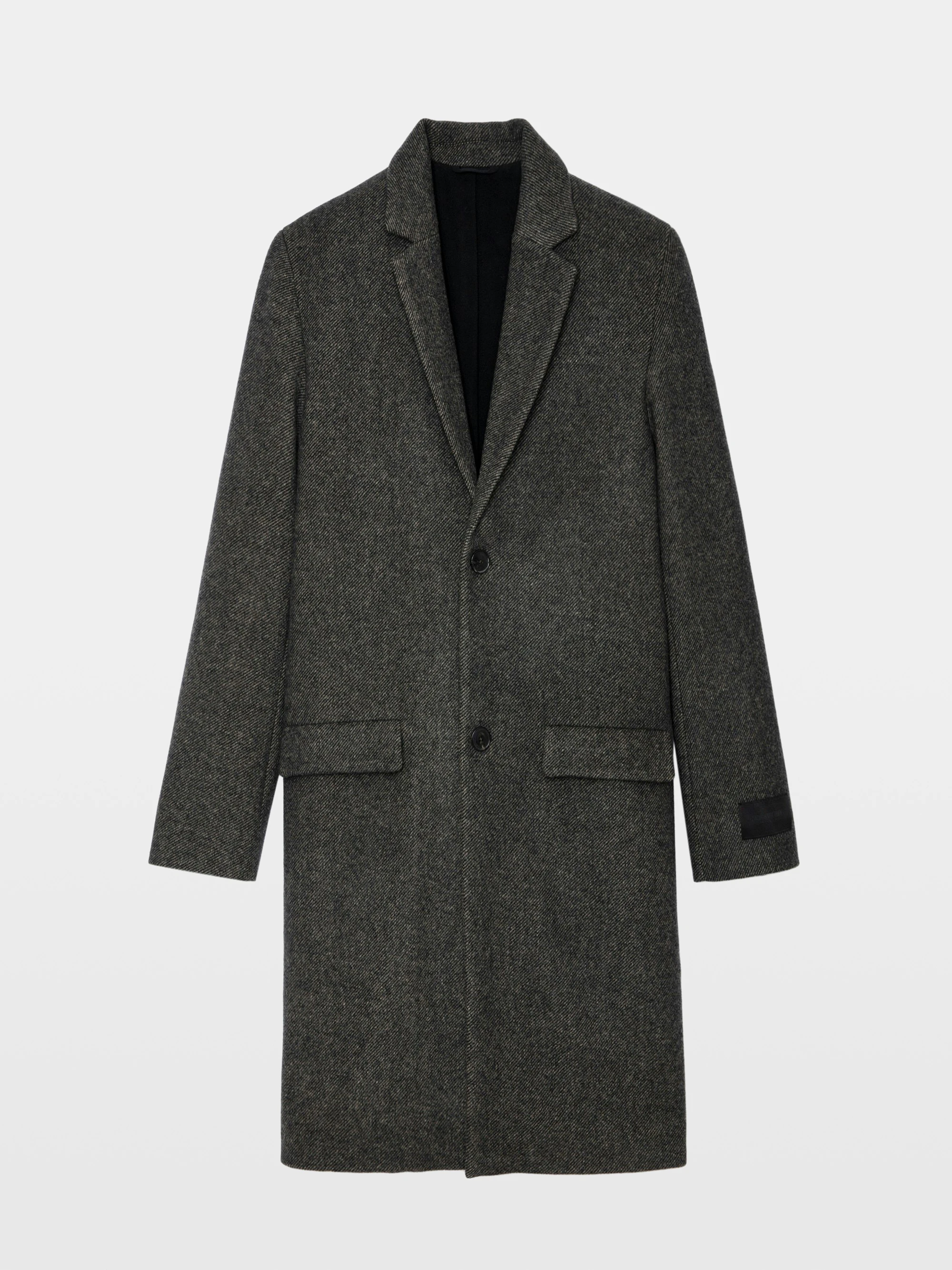 Mid-length UNISEX coat with contrast collar featuring 'C'est la faute à Voltaire' inscription.See more