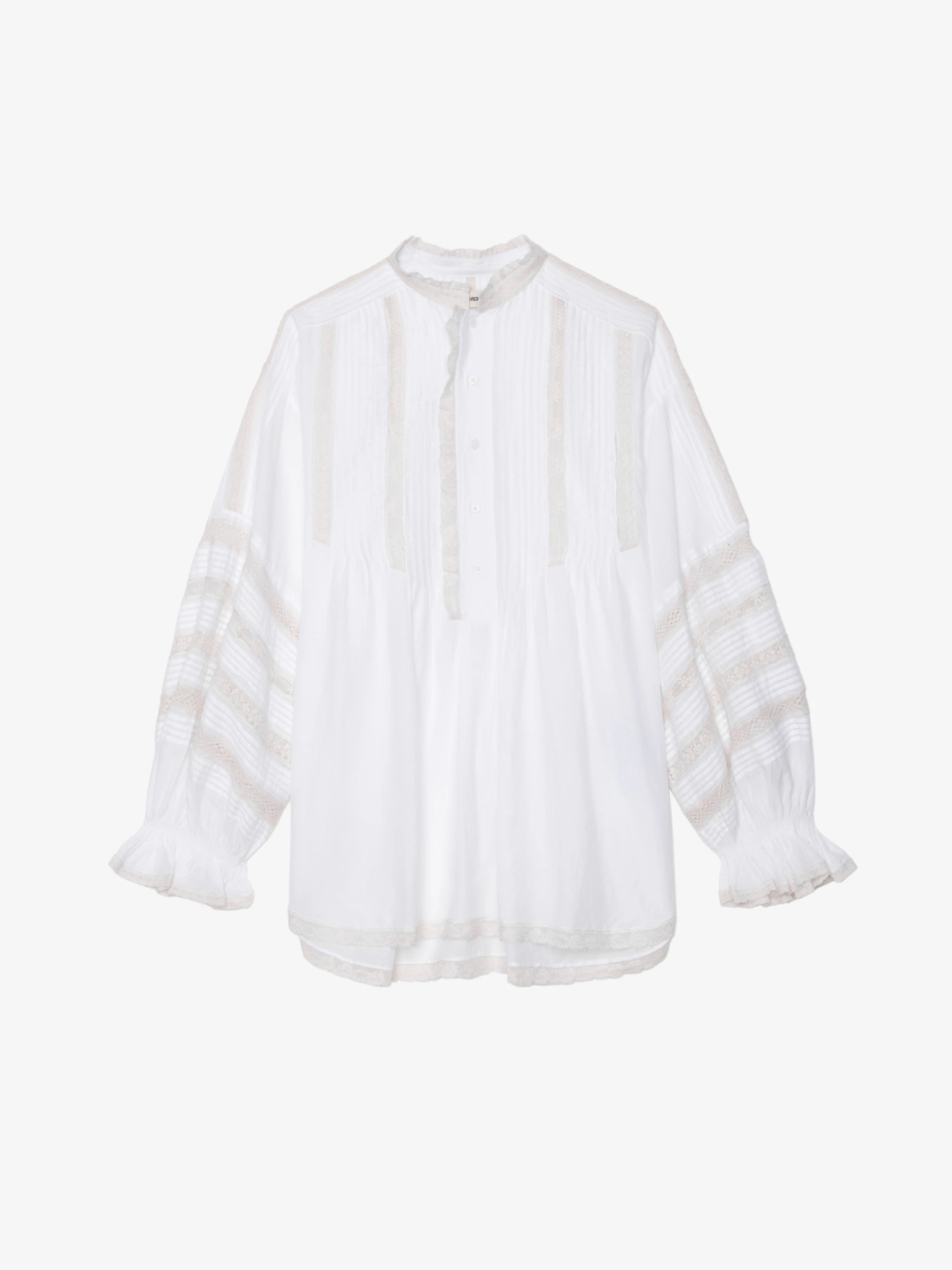 Women's white blouse with lace strips and oversize sleevesSee more
