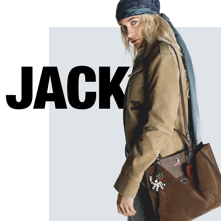 Zeitgenössisch, raffiniert, entschieden urban: JACK überlässt nichts dem Zufall. Klare Linien, starre Henkel, gut platzierte Details: Er setzt auf eine strukturierte, aber niemals strenge Silhouette. In der Hand oder über der Schulter getragen, mit seinen subtil integrierten Oversize-Flügeln verkörpert JACK den rockigen Alltagslook – with attitude.
