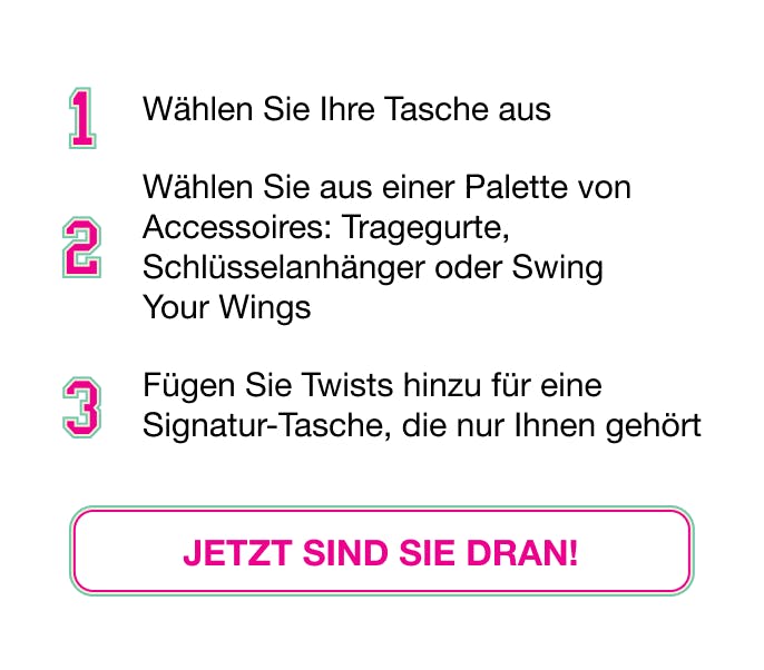 Tauchen Sie mit „Express Yourself“ in das Herz des individuellen Ausdrucks ein, denn Zadig&Voltaire feiert Ihre Einzigartigkeit. Gestalten Sie die symbolträchtigen Accessoires des Hauses - Taschen, Kleinlederwaren, Sneakers - individuell und verleihen Sie ihnen eine Essenz, die nur Ihnen gehört.