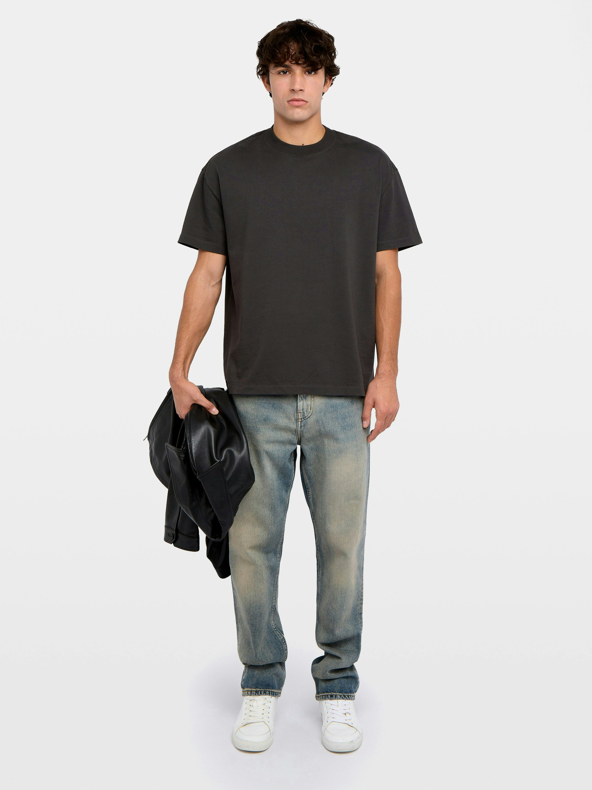 Oversize T-Shirt mit kurzen Ärmeln und Patch vorne.
