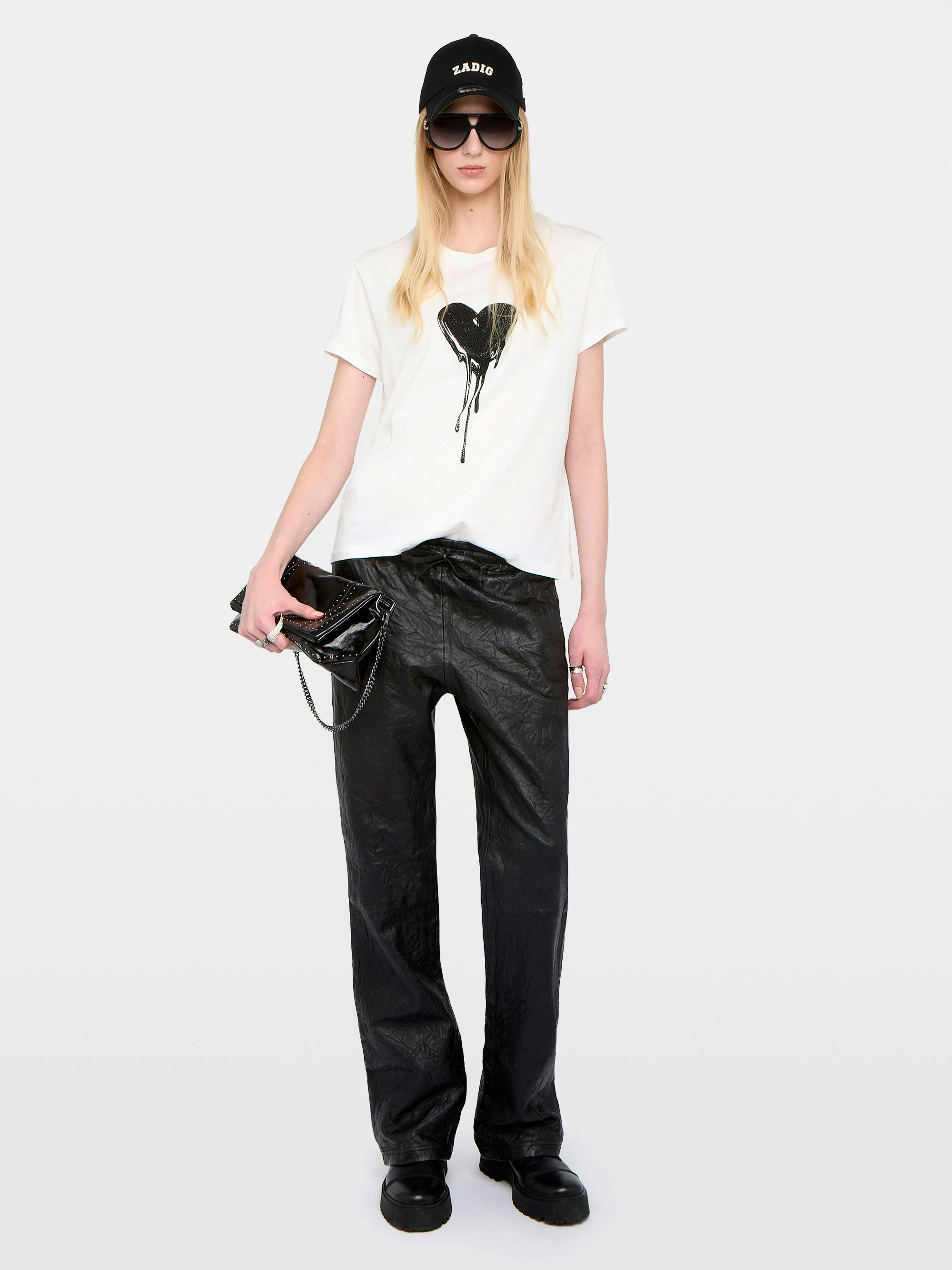 T-Shirt mit Rundhalsausschnitt und kurzen Ärmeln mit Strass-Verzierung.