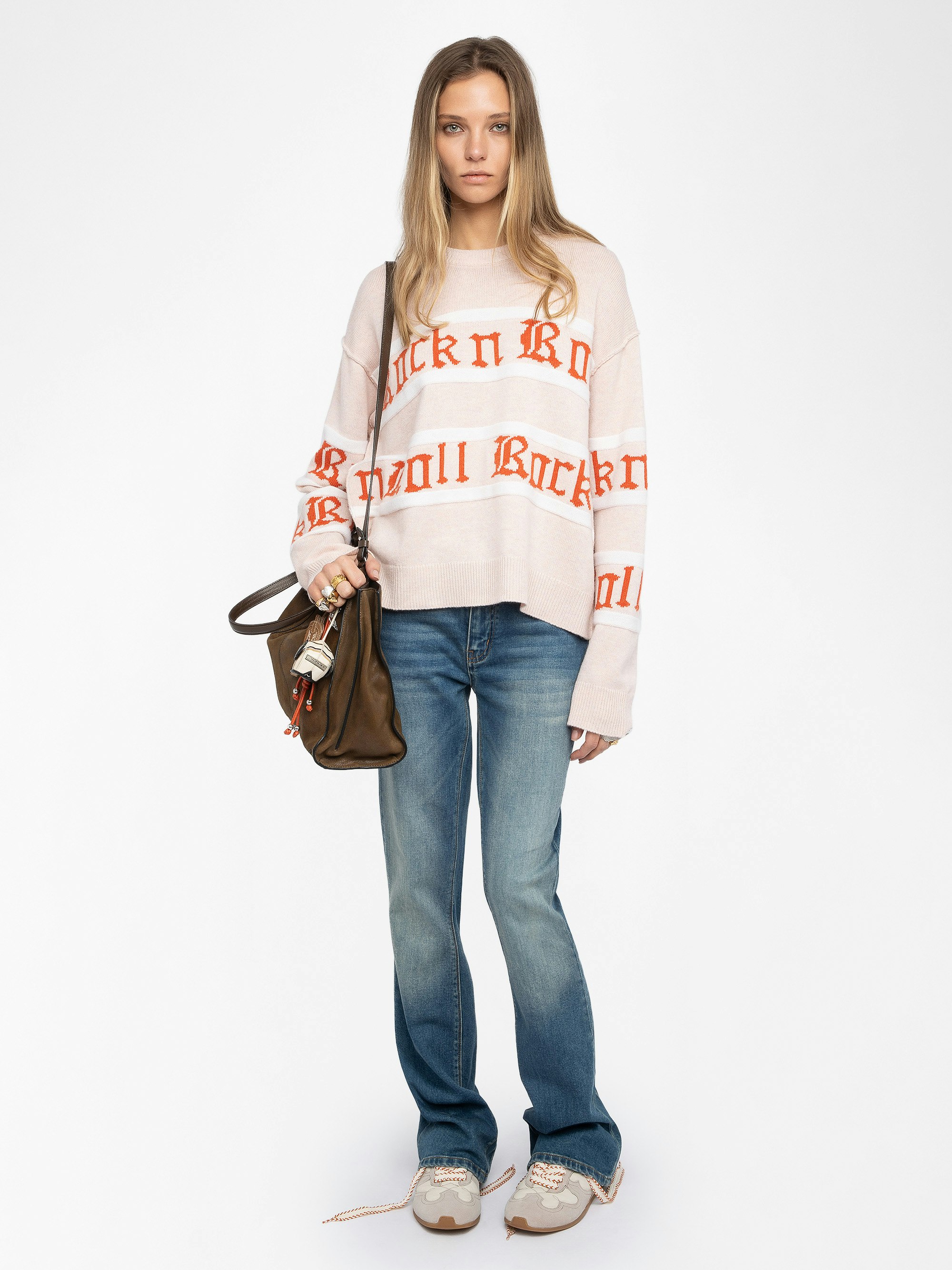 Gestreifter Pullover mit Rundhalsausschnitt und Rock n Roll Intarsien.