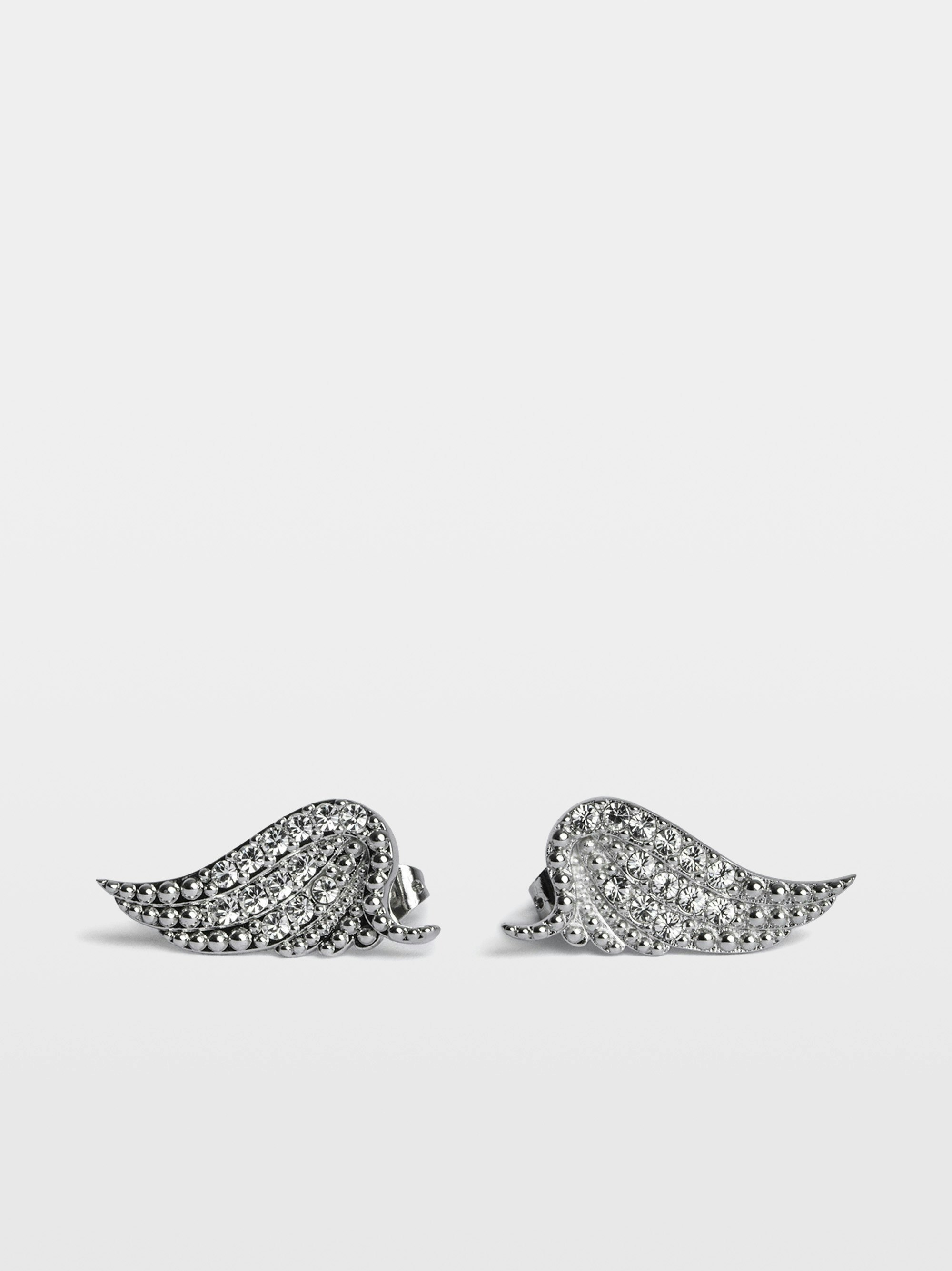 Flügel-Ohrringe aus Messing mit Strasssteinen verziert.