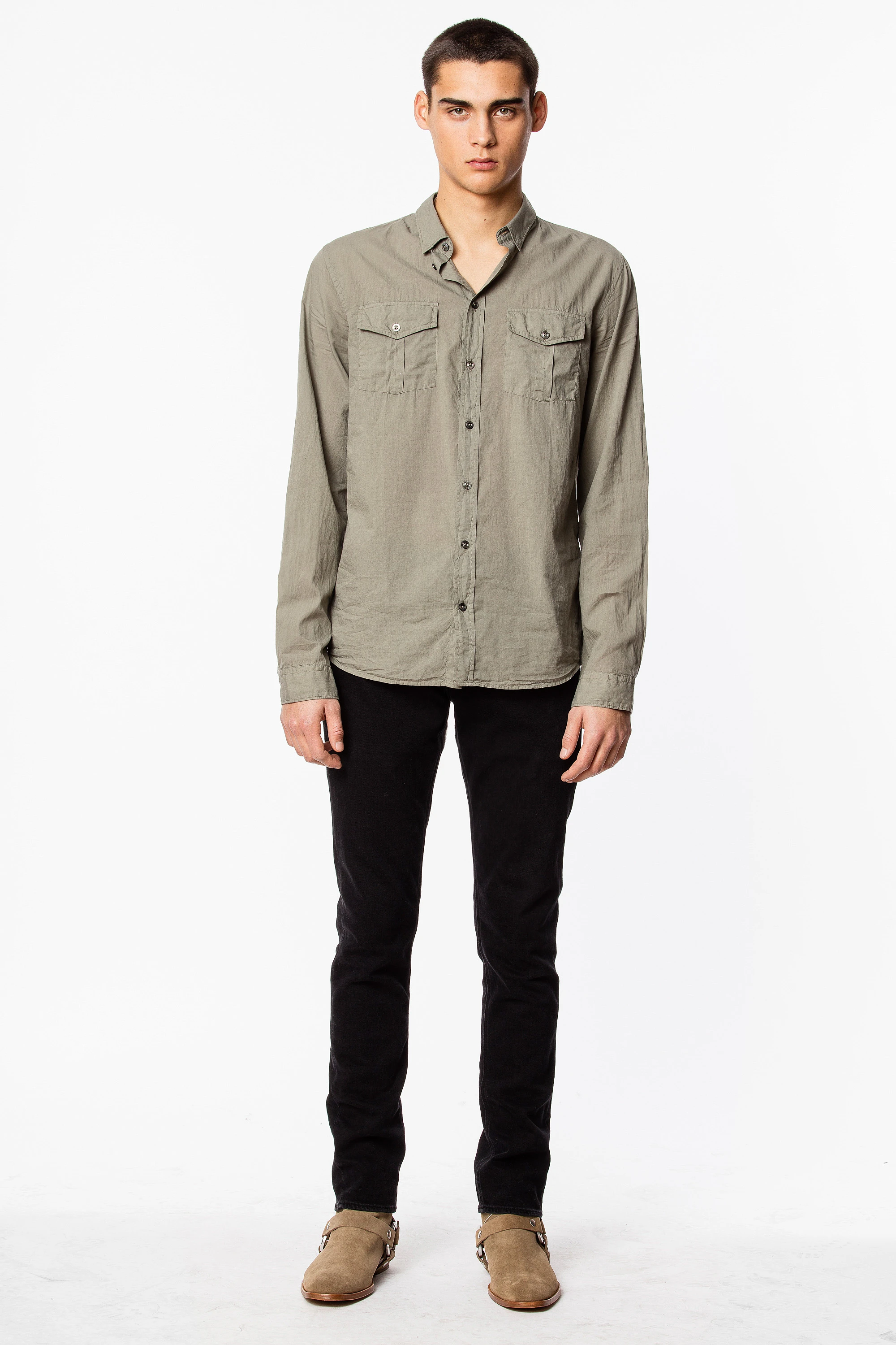 Khakifarbenes Herrenhemd von Zadig&Voltaire, leger, aus Baumwoll-Voile, mit Brusttaschen.