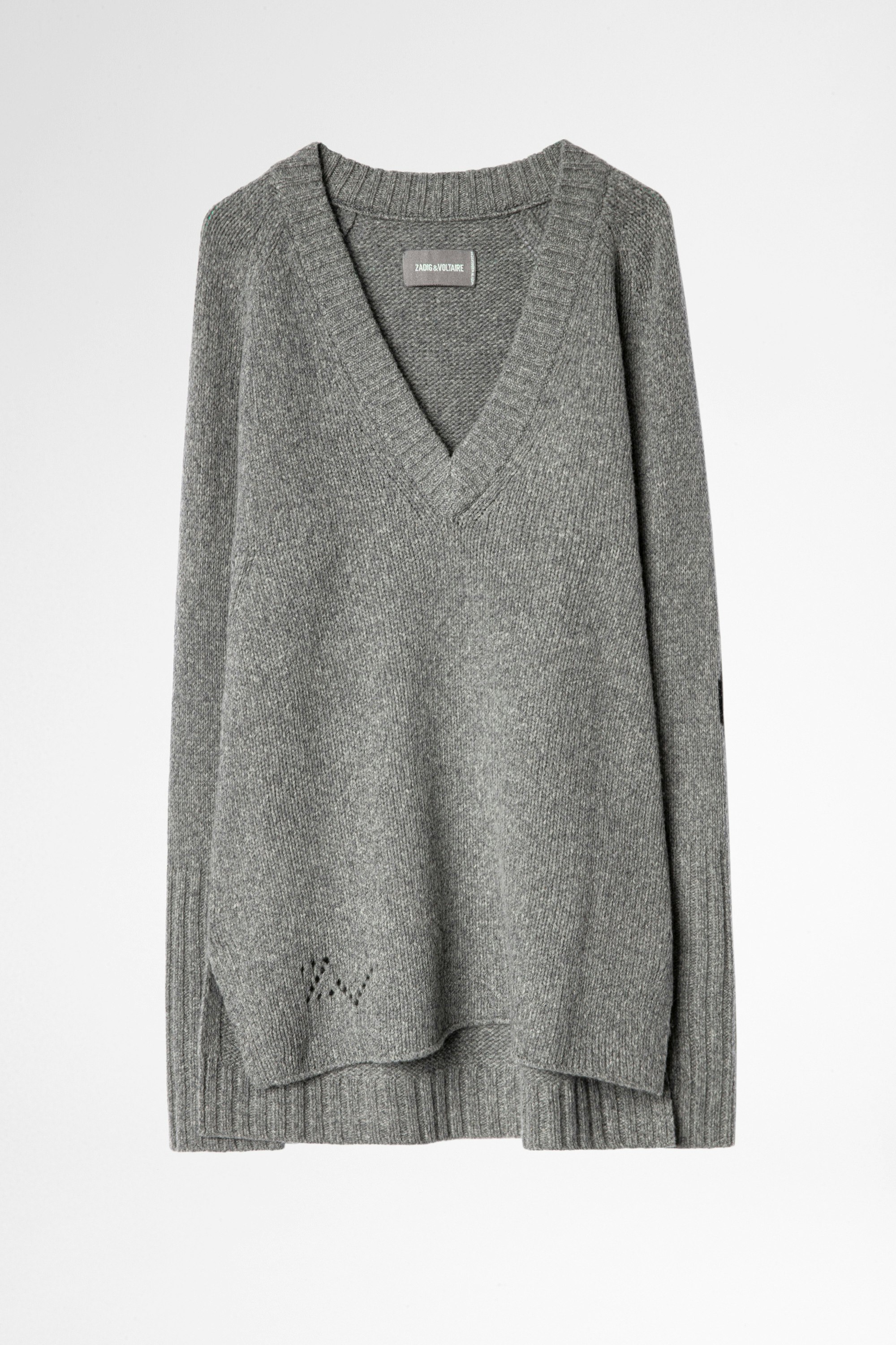 Grauer Damenpullover von Zadig&Voltaire, aus Woolmark®-zertifizierter Merinowolle. Die Woolmark Company garantiert die Qualität dieser außergewöhnlichen, seidig weichen Faser.