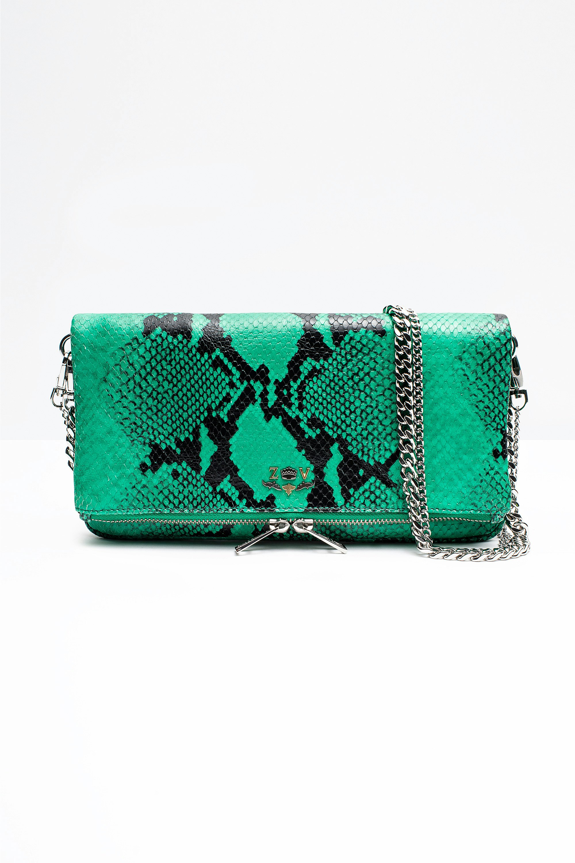 Clutch mit Reißverschluss aus Leder mit Snake-Print