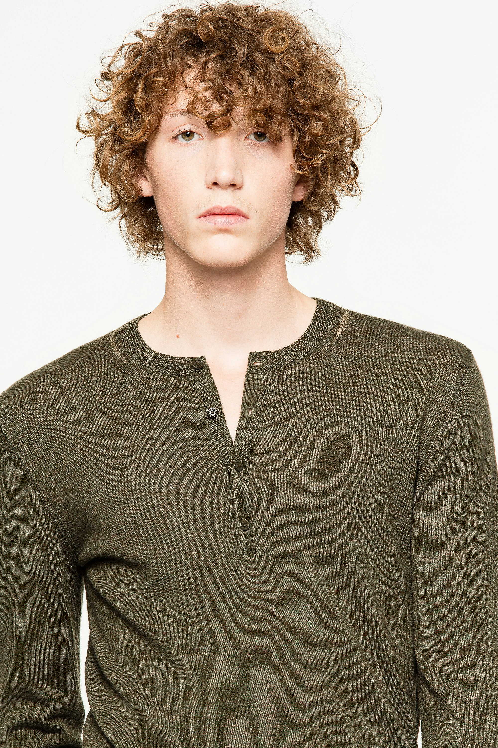 Pullover aus Merinowolle mit geknöpftem Halsausschnitt