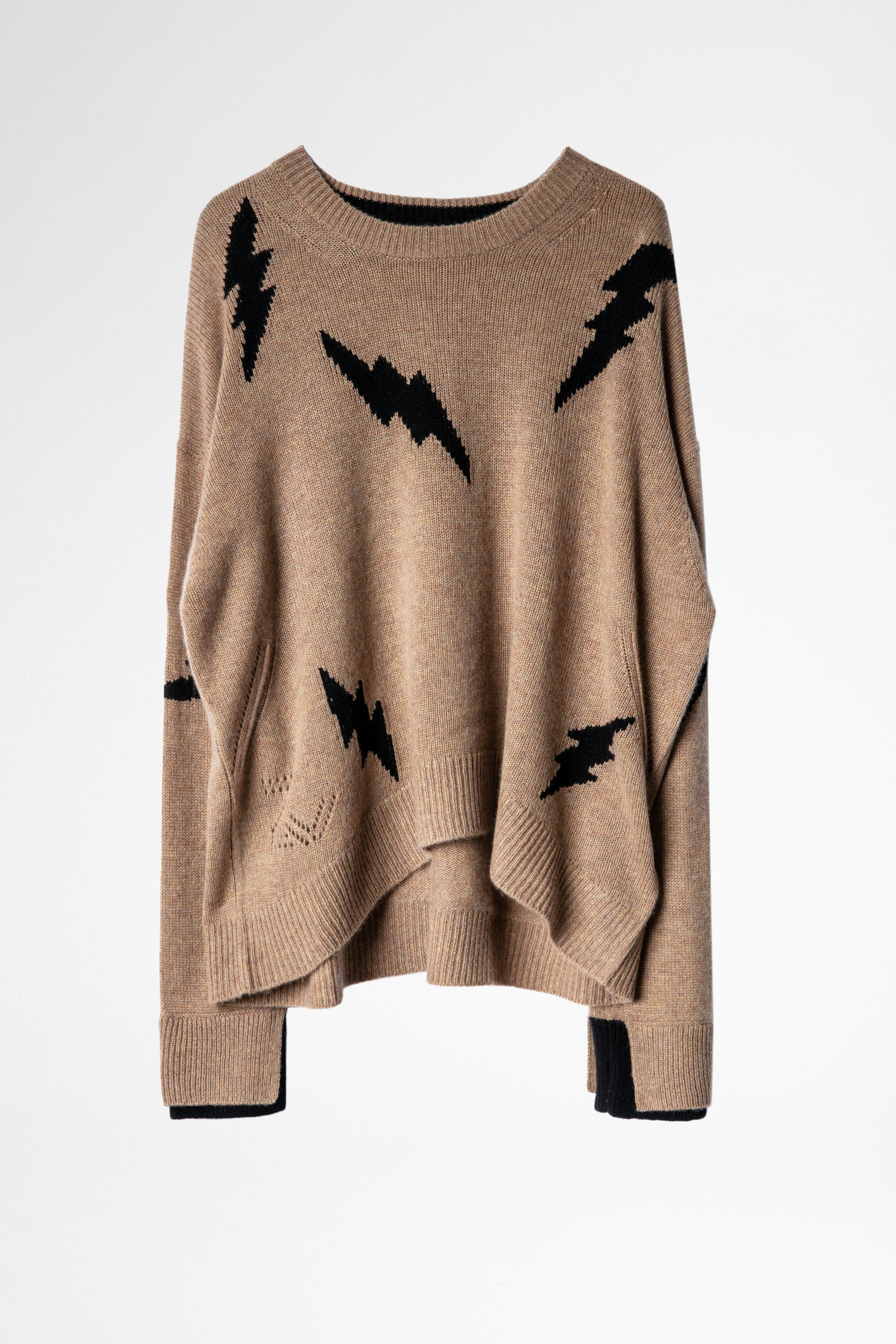 Camelfarbener Damenpullover aus Kaschmir mit Blitzmotiv