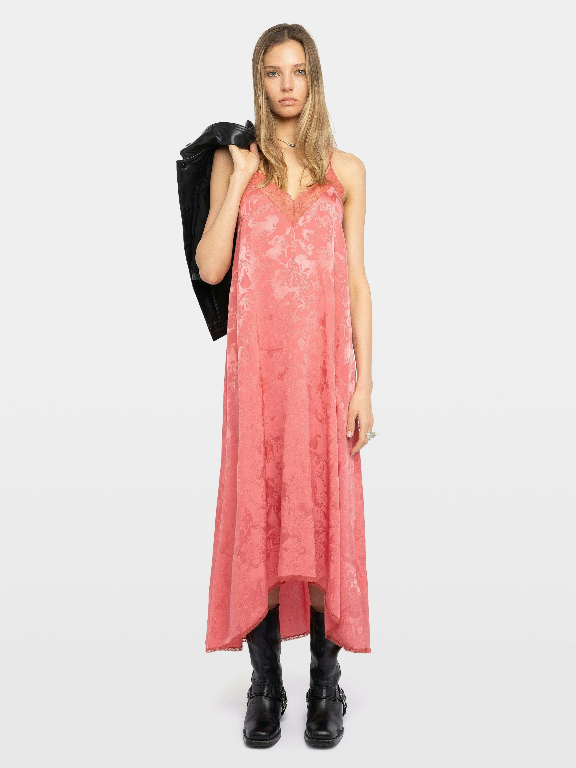 Midikleid im Lingerie-Stil aus Seide mit Jacquard horses, verstellbaren Trägern und exklusiver französischer Spitze.