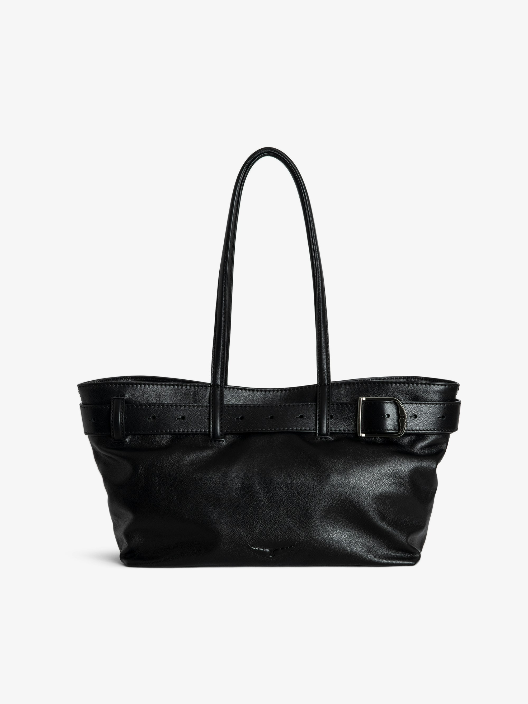 Leather shopper bag with embossed wing signatures.