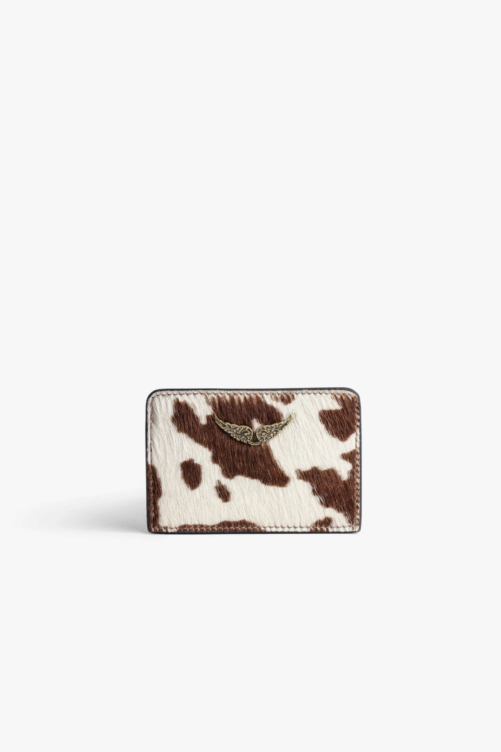 Women's card case in brown-and-white pony-effect leather