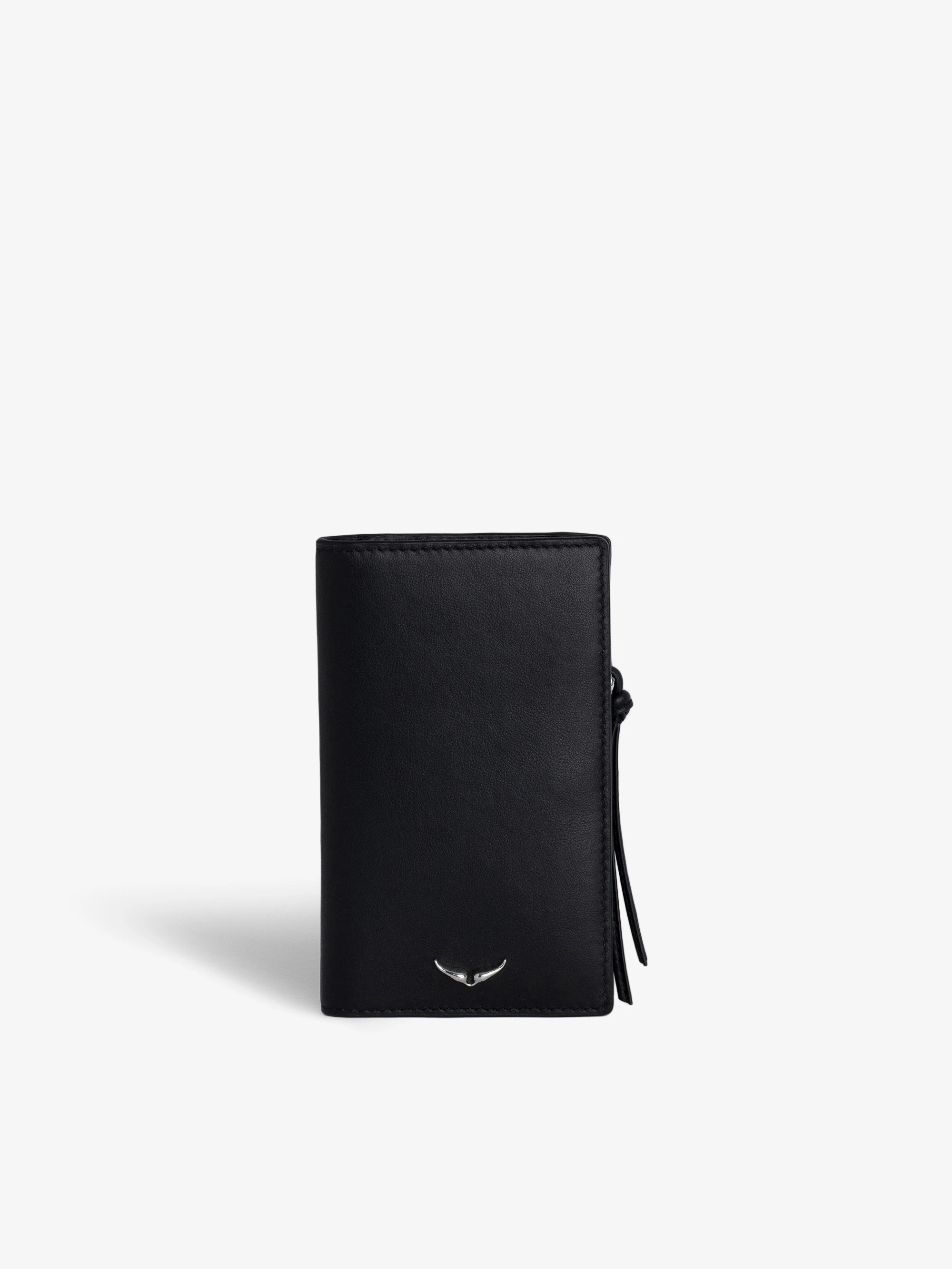 Smooth black leather card holder.