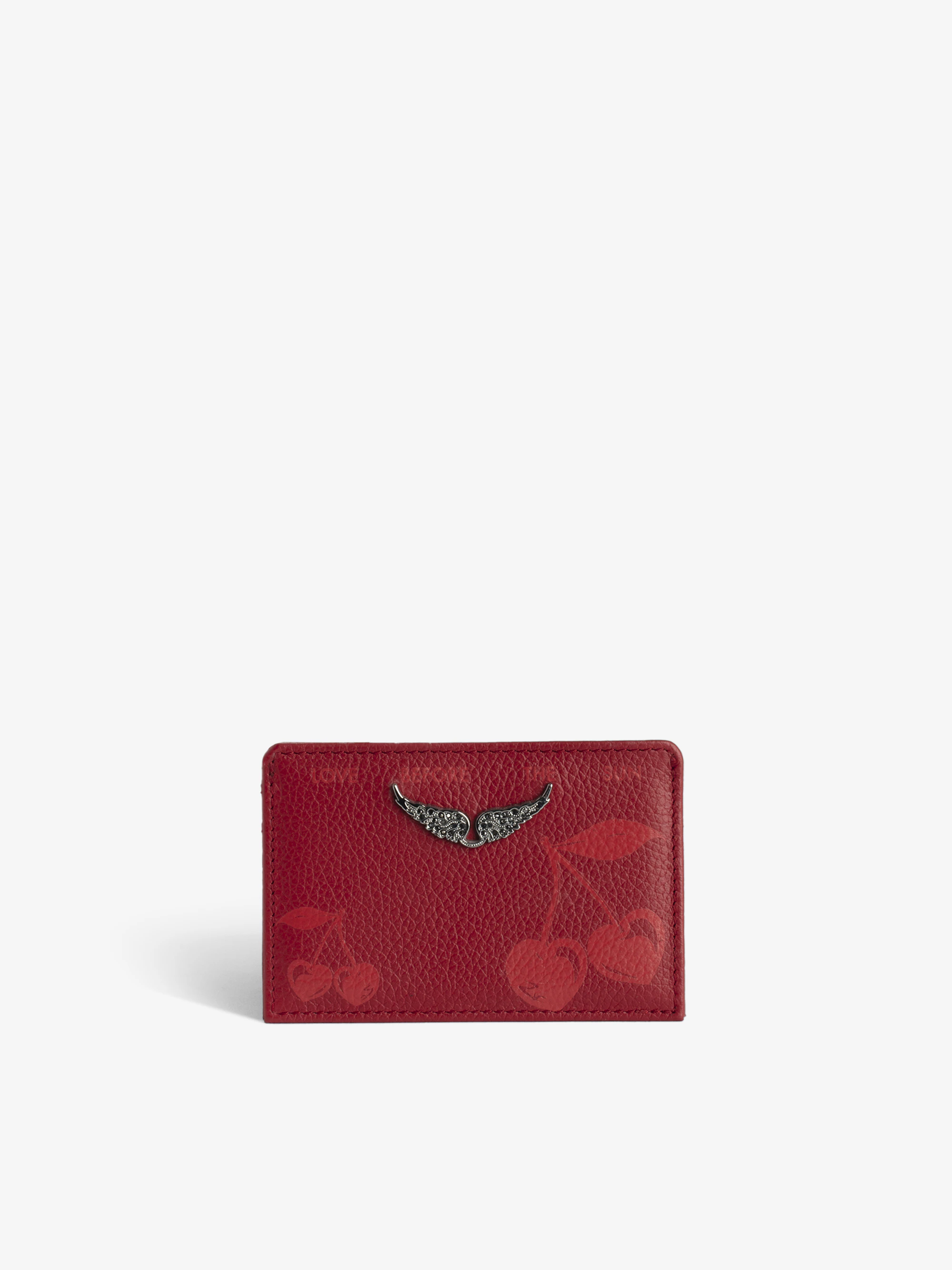 Grained leather Cherry card holder adorned with signature metal wings.