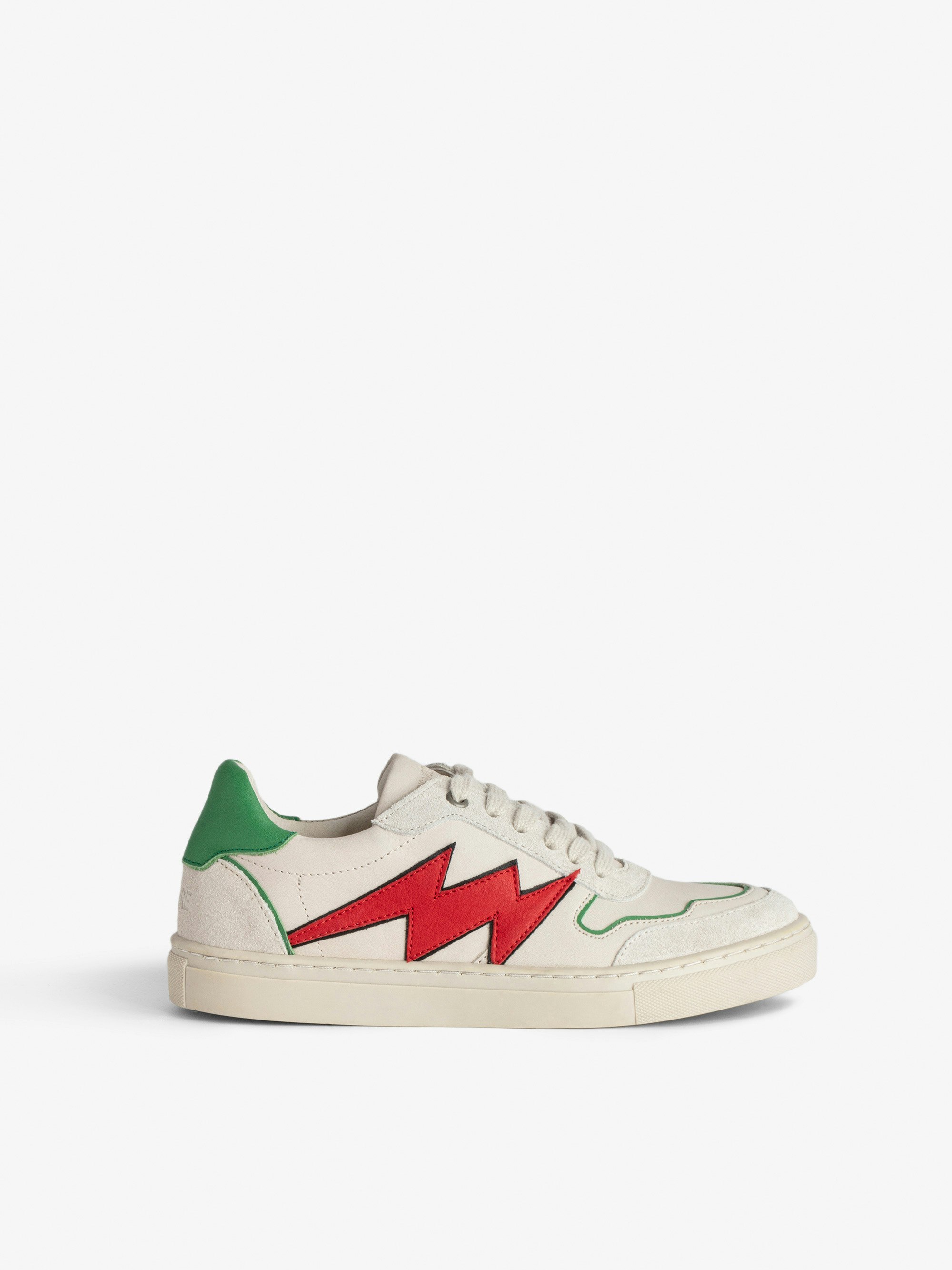 Low-top leather trainers with contrasting lightning detail for boys.
