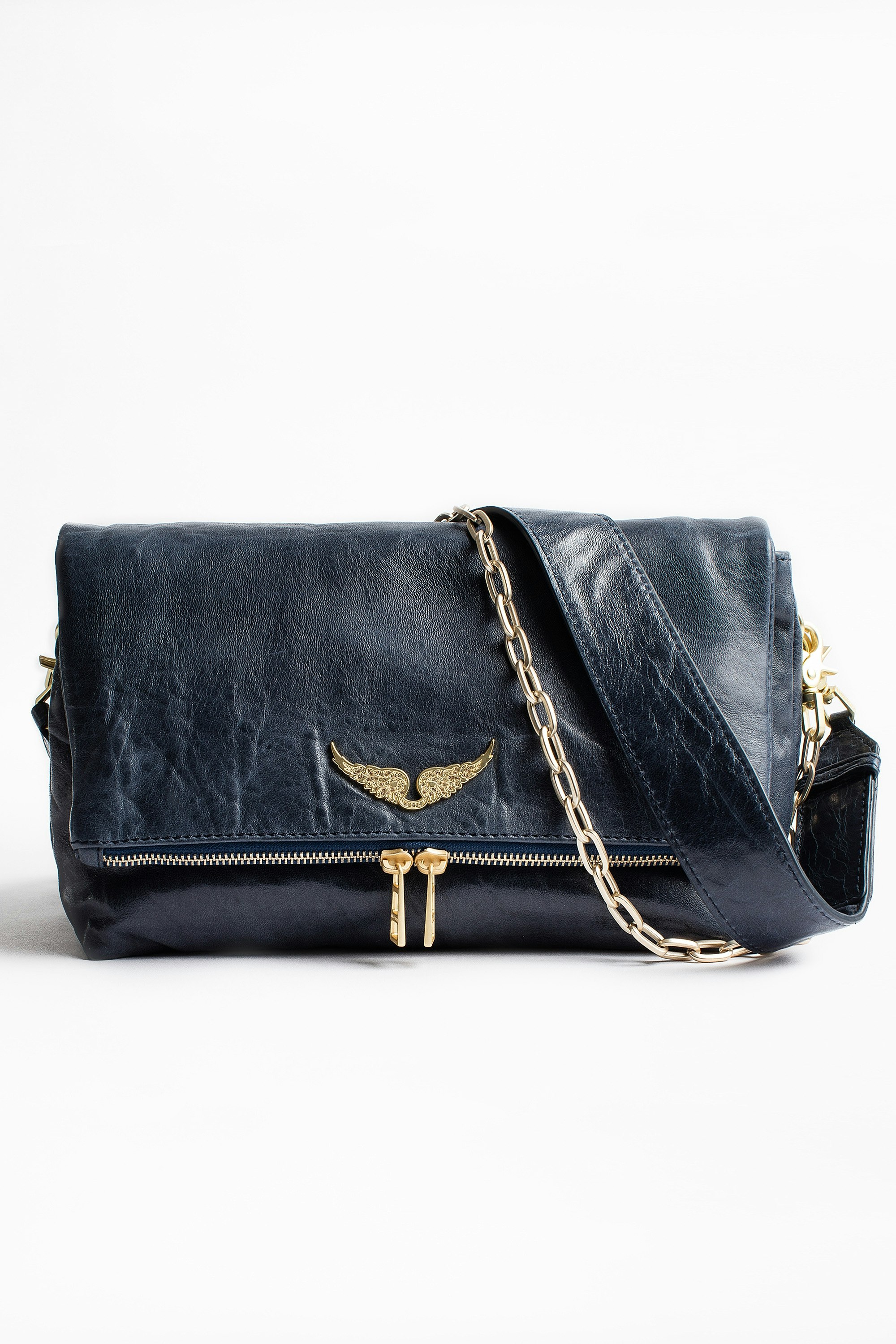 Zadig&Voltaire women's bubble leather bag with two removable chains, can be worn over the shoulder or across the body, two inner compartments and front zipped pocket.