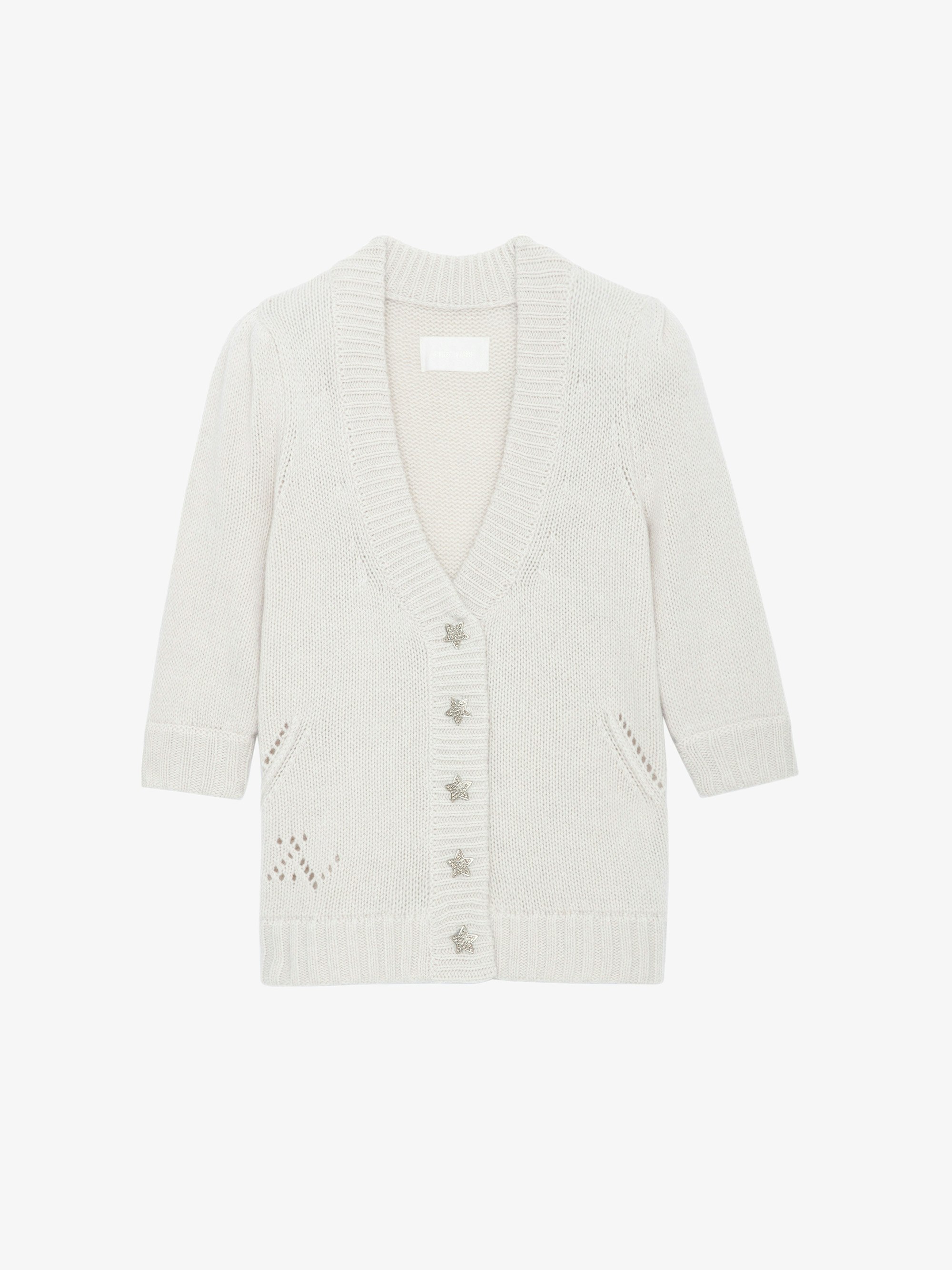 Cárdigan de punto con mangas tres cuartos, hombros fruncidos y cierre abotonado con botones joya en forma de estrella.Ver más