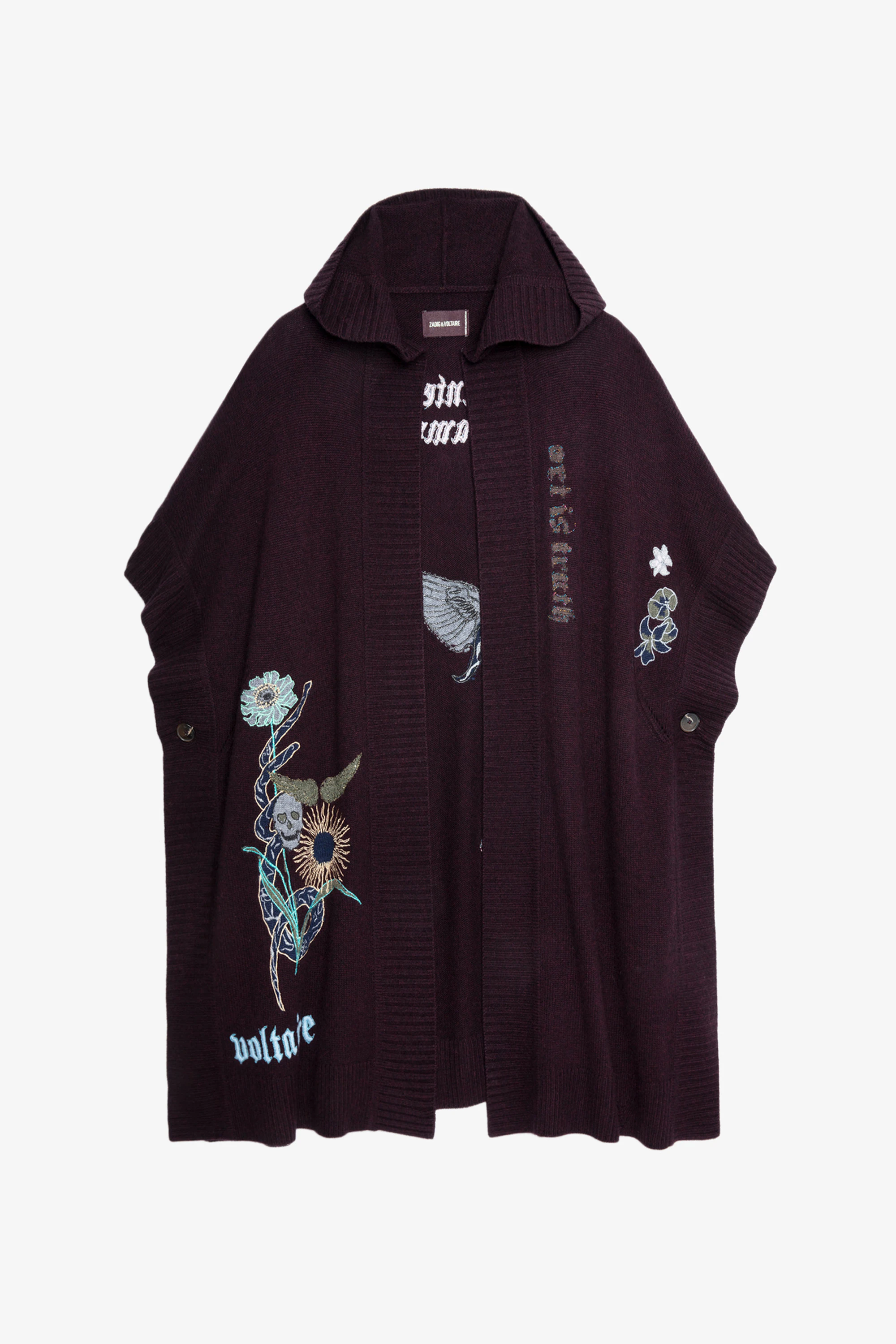 Cárdigan tipo abrigo largo marrón de cachemira con motivos y mensajes para mujer.Ver más