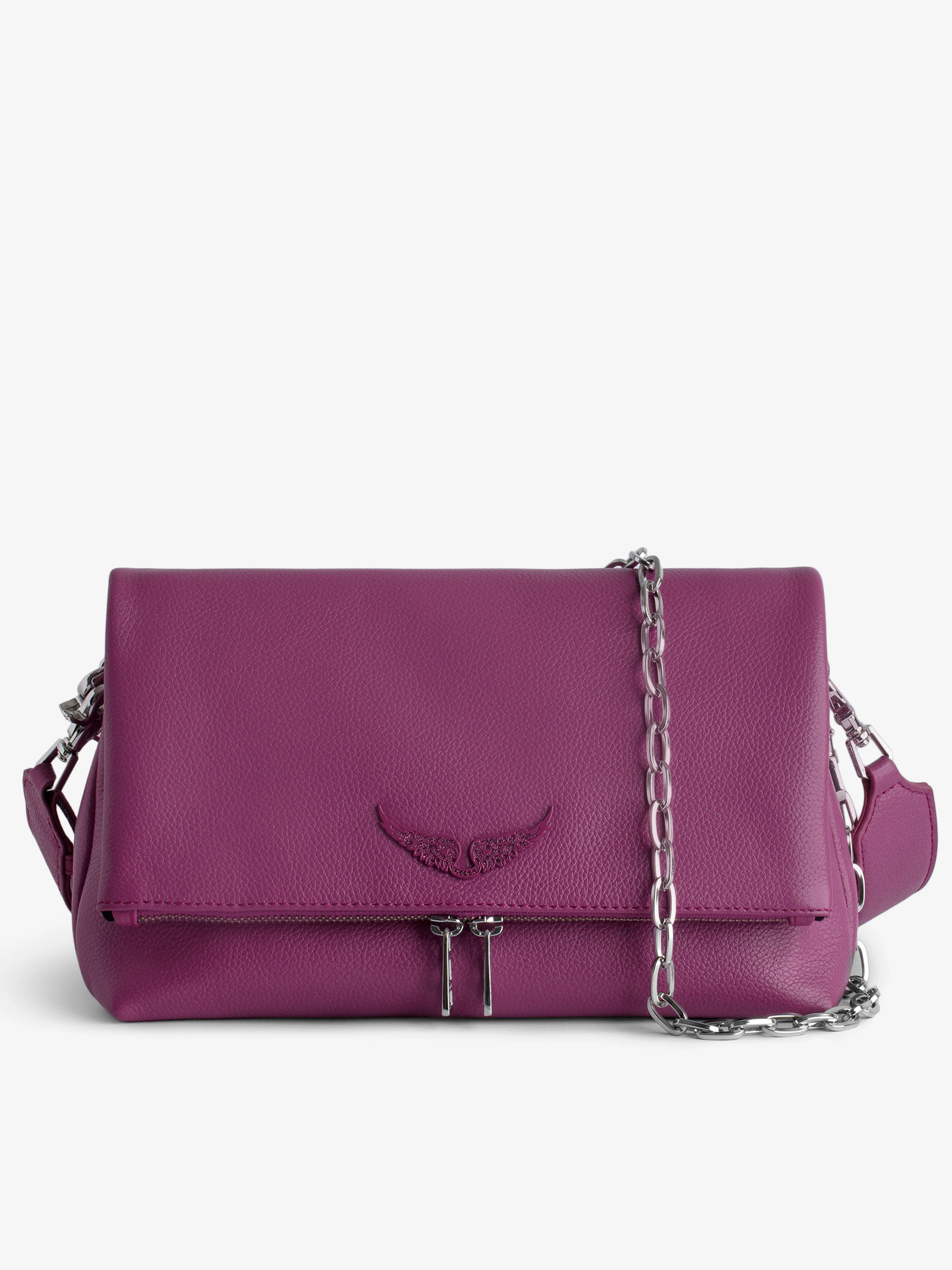 Bolso fucsia de piel con efecto granulado con bandoleras de cuero y de cadena.Ver más