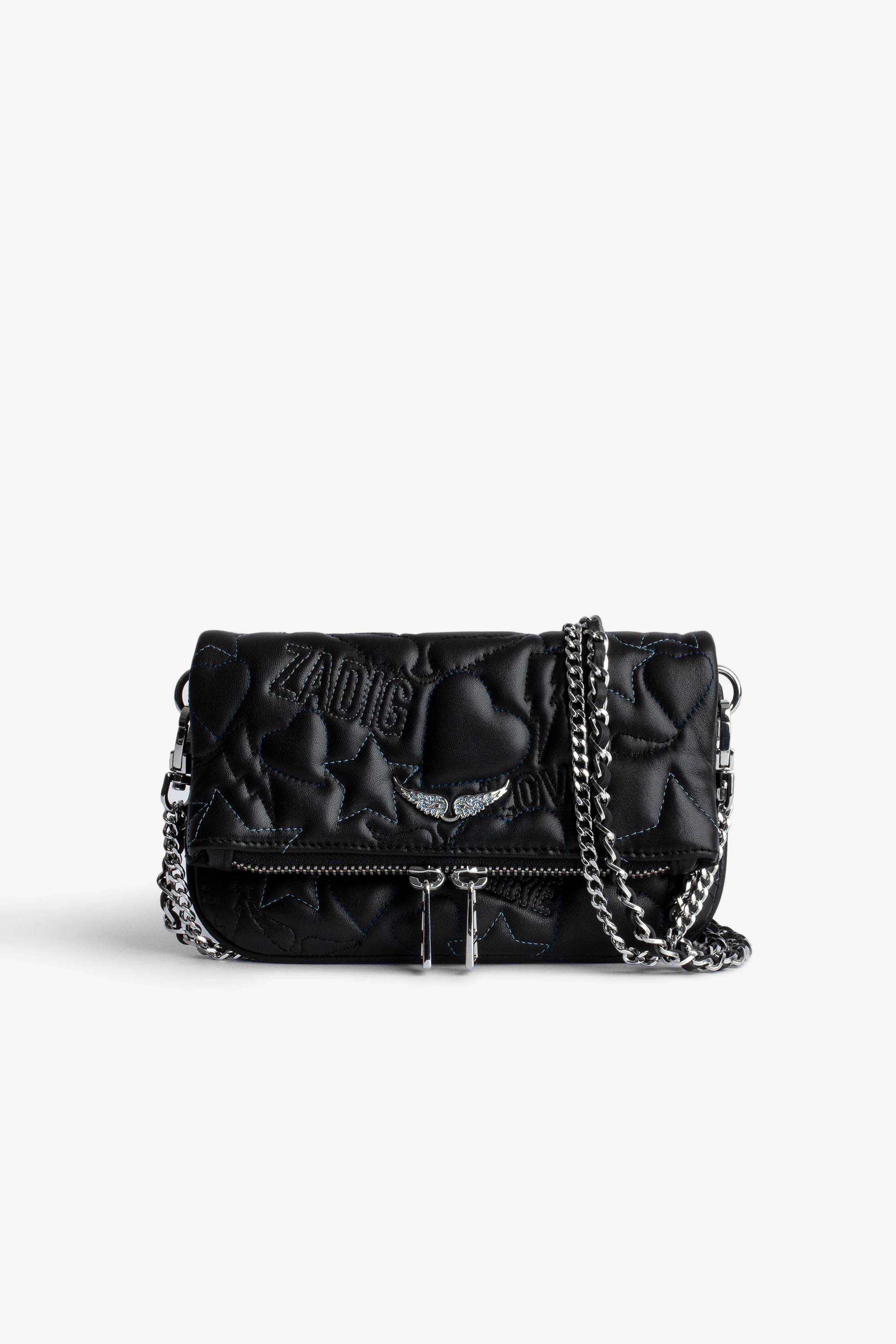 Bolso de mano Rock Nano en piel acolchada negra con motivos pespuntados para mujer