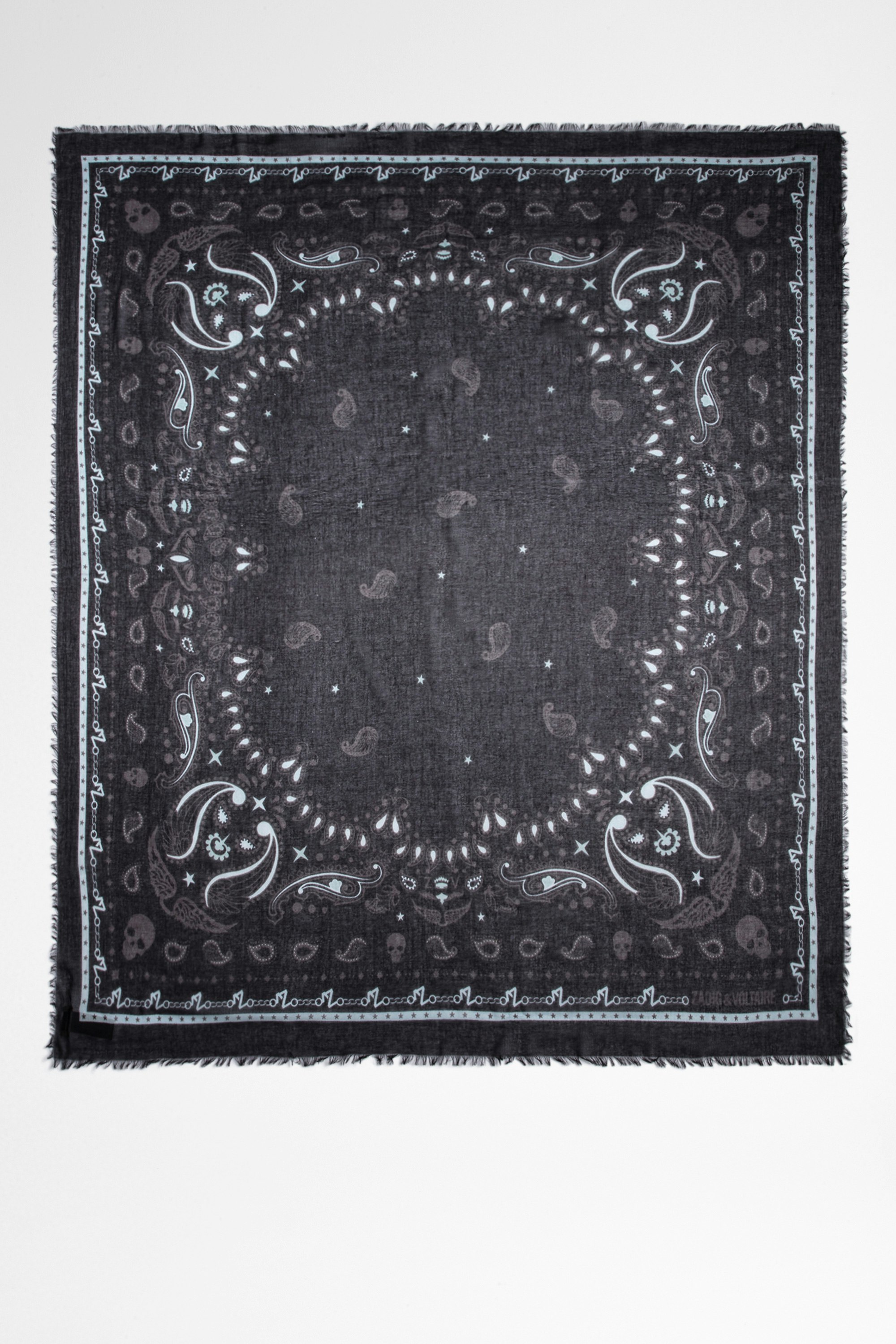 Bufanda negra de algodón de hombre con estampado de bandana. Este producto cuenta con la certificación GOTS y está confeccionado con fibras procedentes de la agricultura ecológica.Ver más