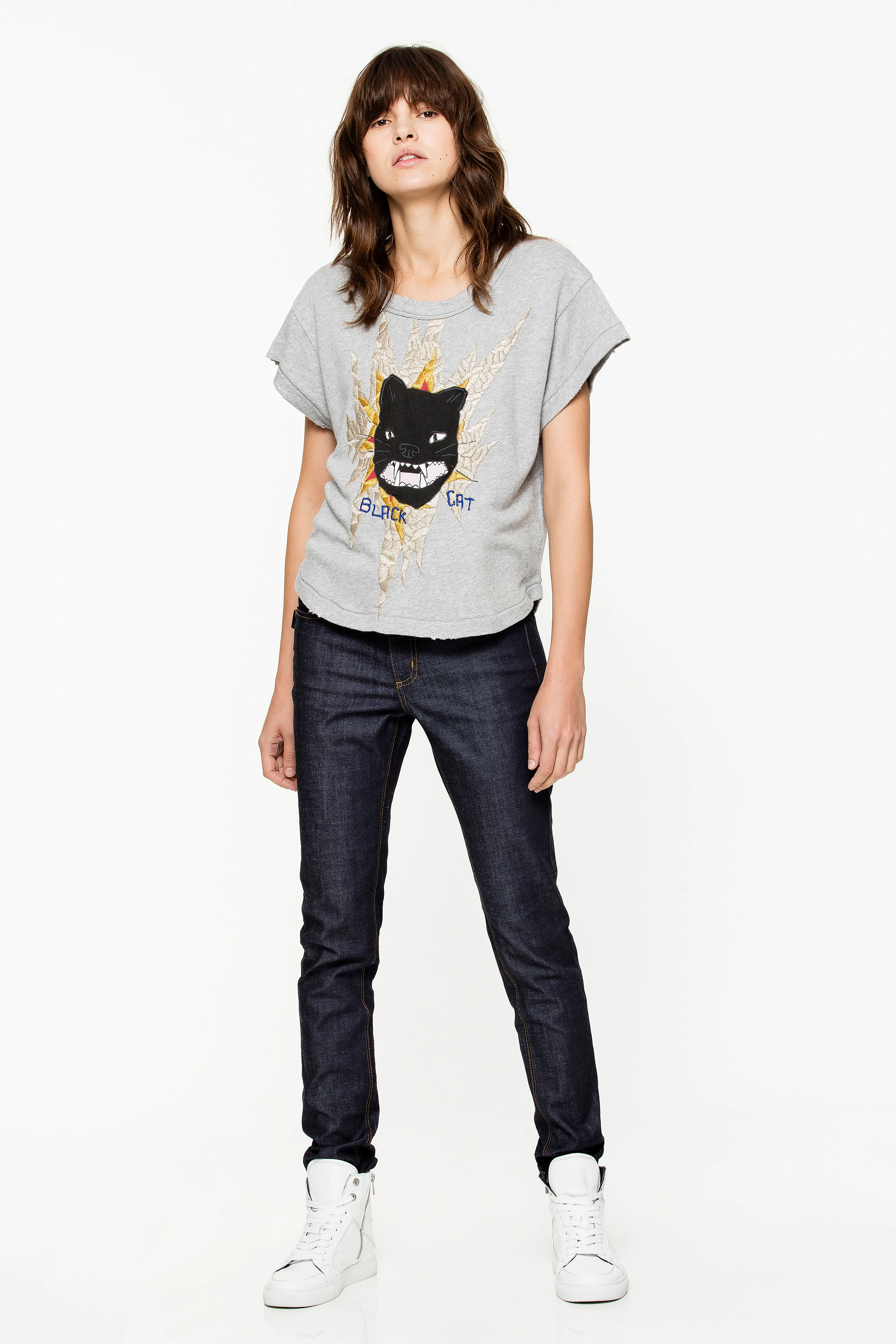 Sudadera de manga corta Zadig & Voltaire, de algodón y modal, espíritu sportswear chic, estampado de «gato» en la parte delantera.