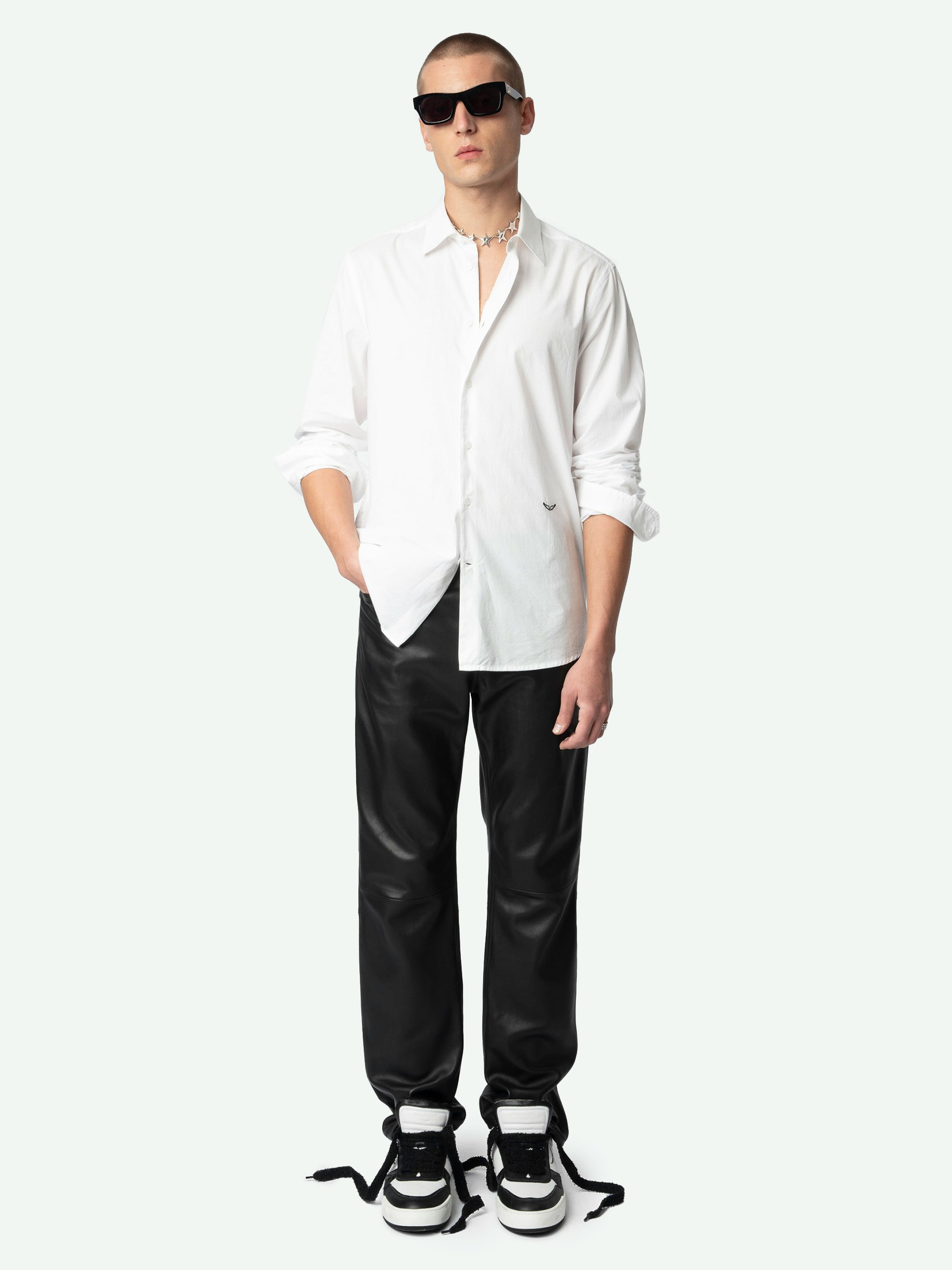 Camisa entallada de algodón voile con bordado de alas, mangas largas y cierre abotonado.