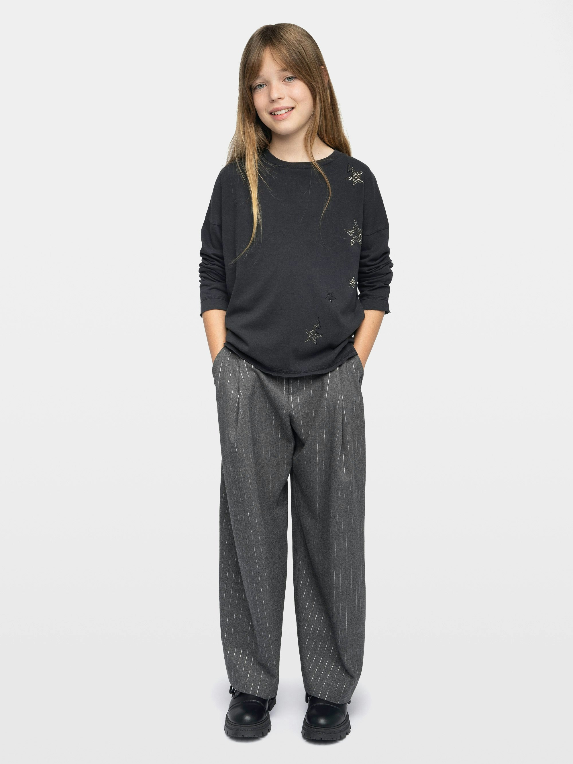 T-shirt à manches longues, col rond et illustration étoiles en strass à l'avant.