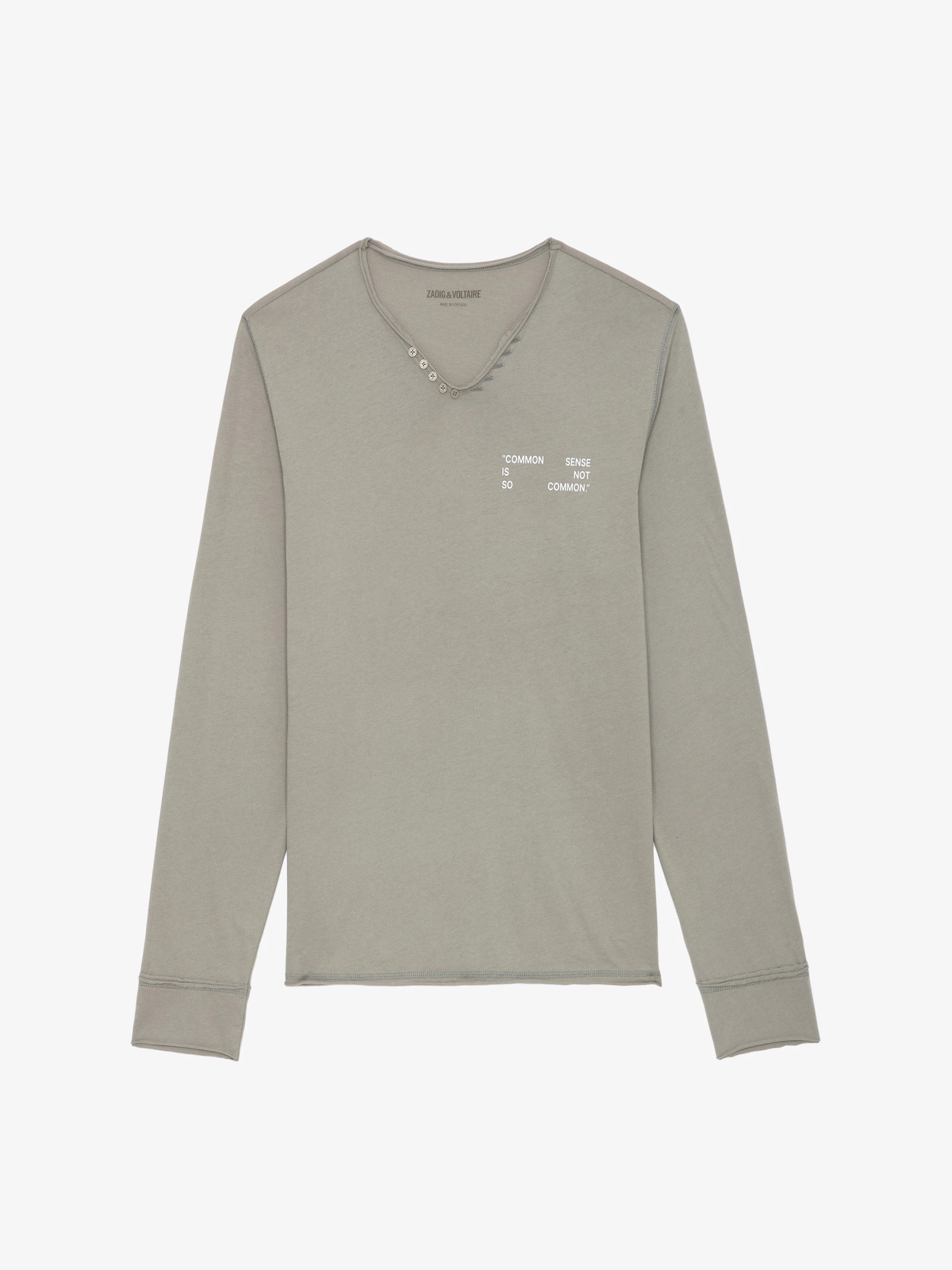 T-shirt tunisien en coton gris à manches longues, message et photoprint Mountain.Voir plus