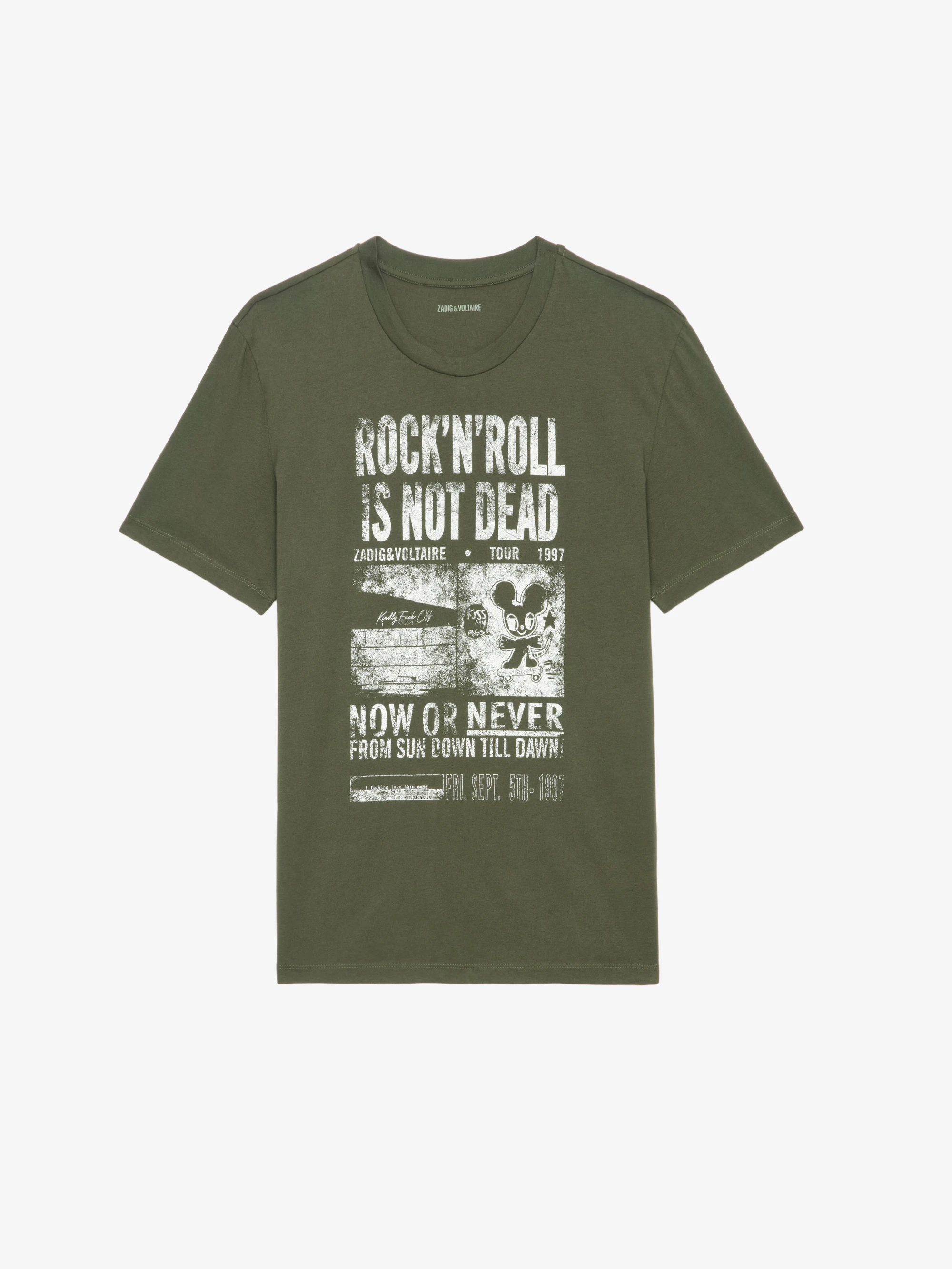 T-shirt en coton biologique kaki effet usé à manches courtes et imprimé Concert.Voir plus