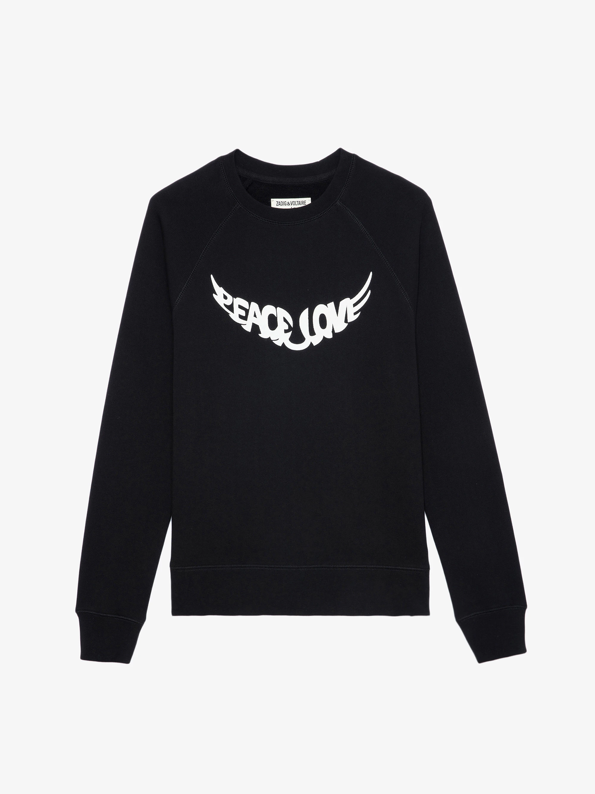 Sweatshirt en coton noir orné d'une inscription "Peace & Love" en forme d'ailes unisexe.Voir plus