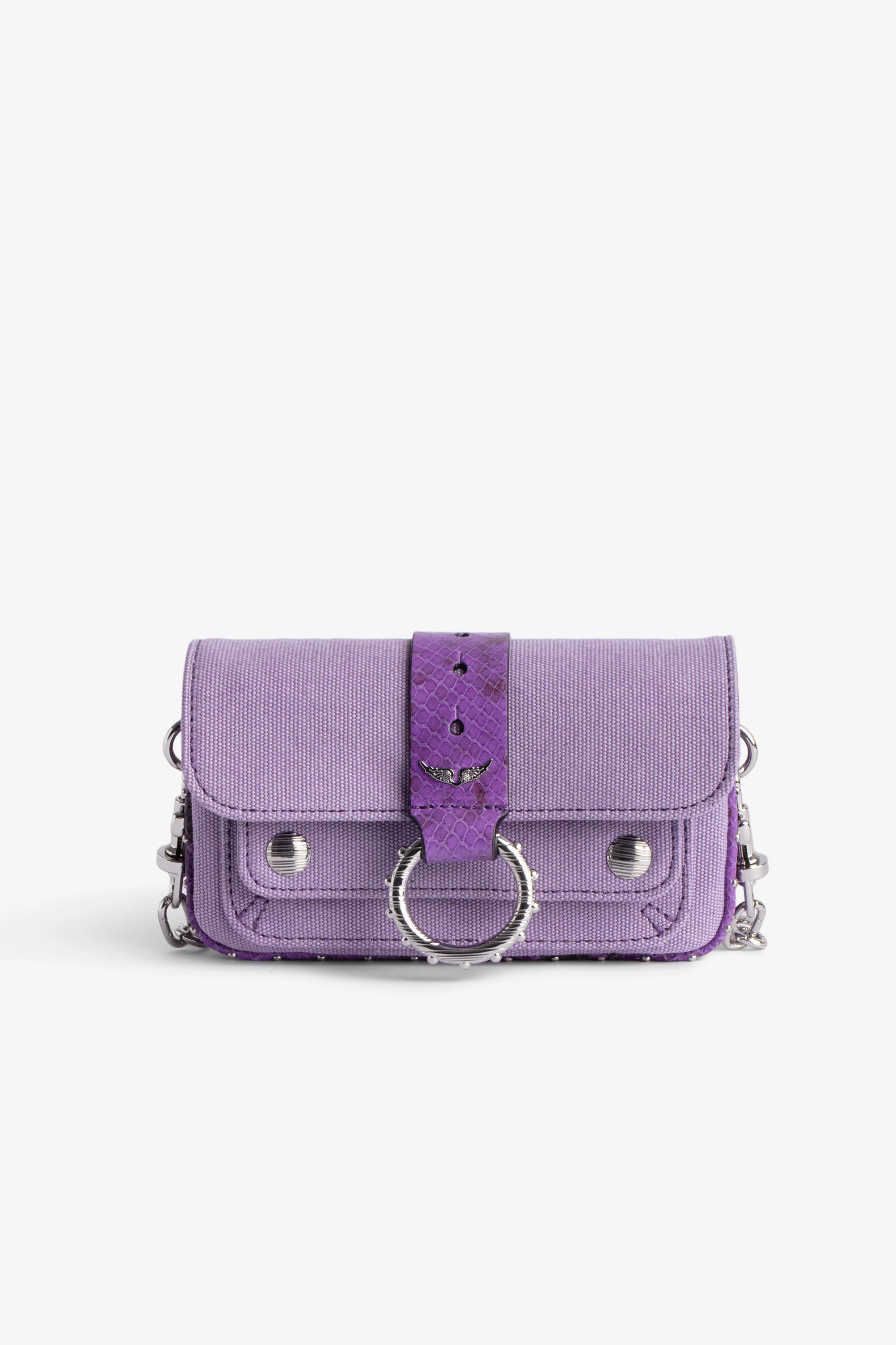 Petit sac en toile de coton violet à empiècements python Femme