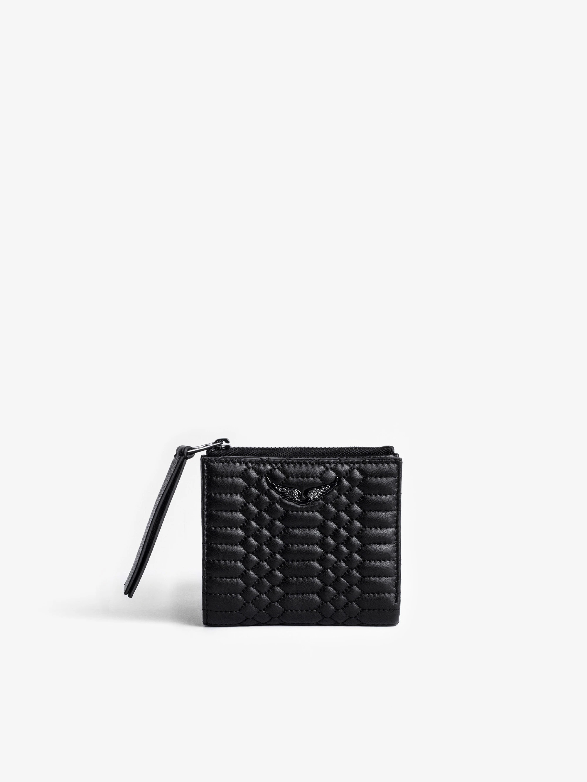 Porte-monnaie en cuir d'agneau noir matelassé.Voir plus