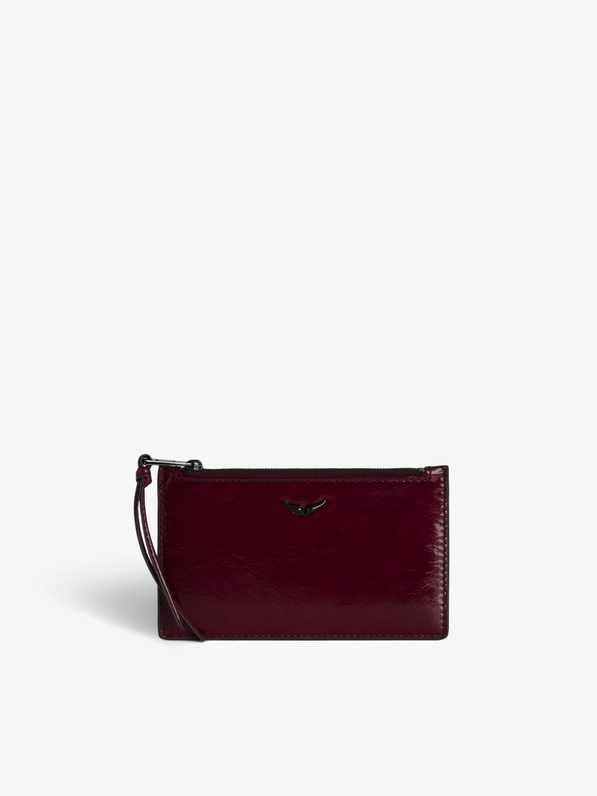 Porte-monnaie en cuir rouge effet froissé brillant.Voir plus