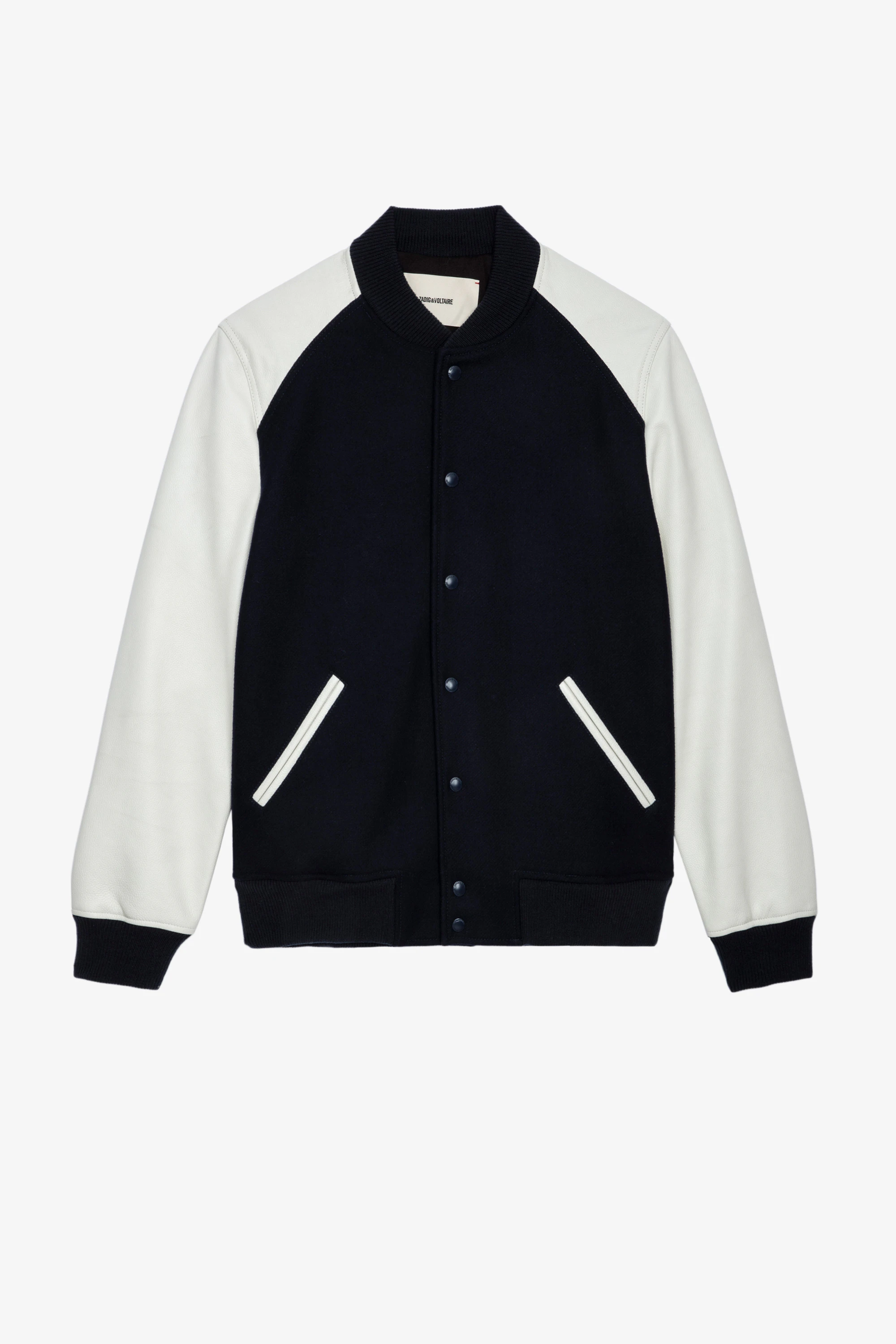 Blouson en laine et cuir.Voir plus