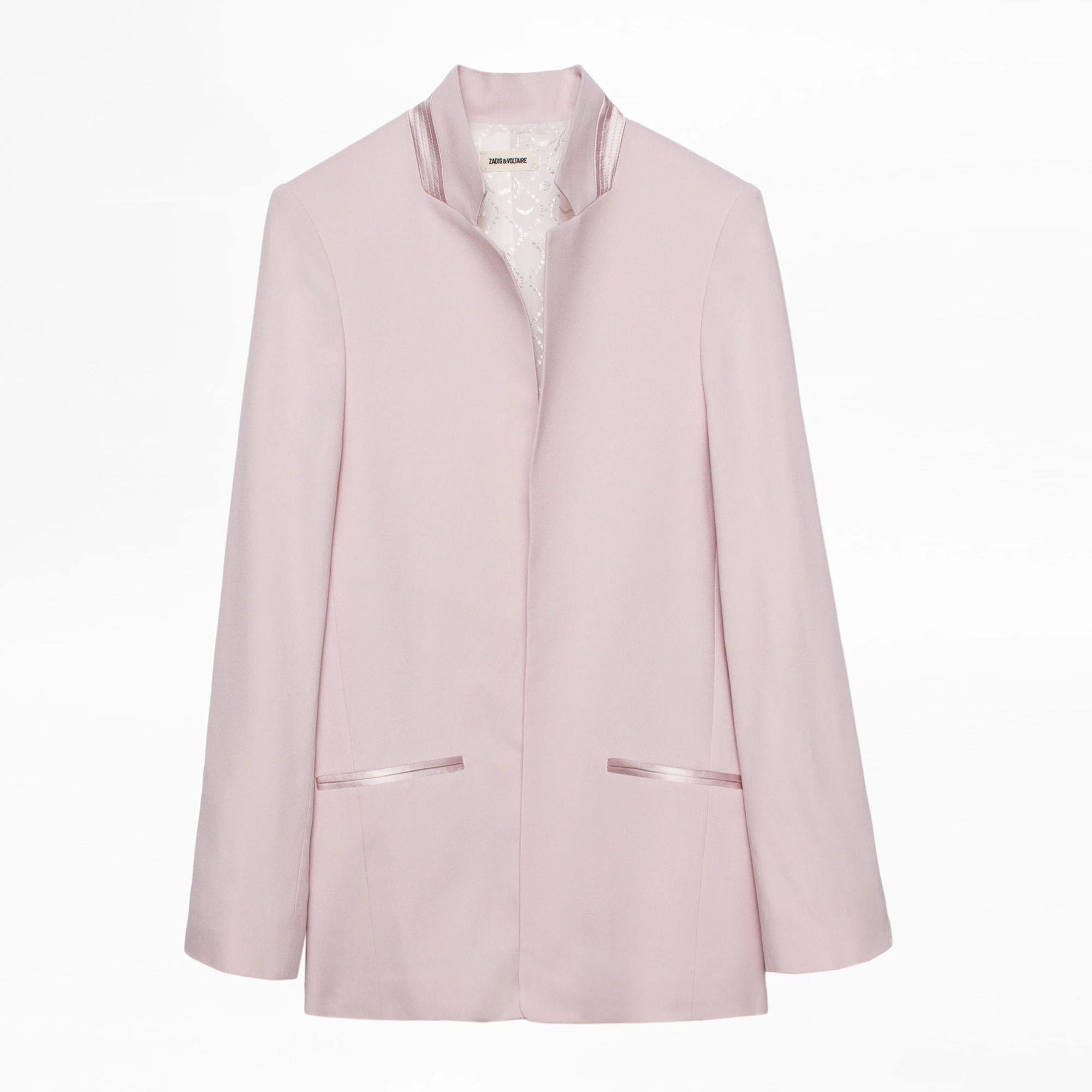 Veste femme Zadig&Voltaire, en crêpe envers satin, sans boutons, col montant, deux poches passepoilées, bandes sur les côtés.