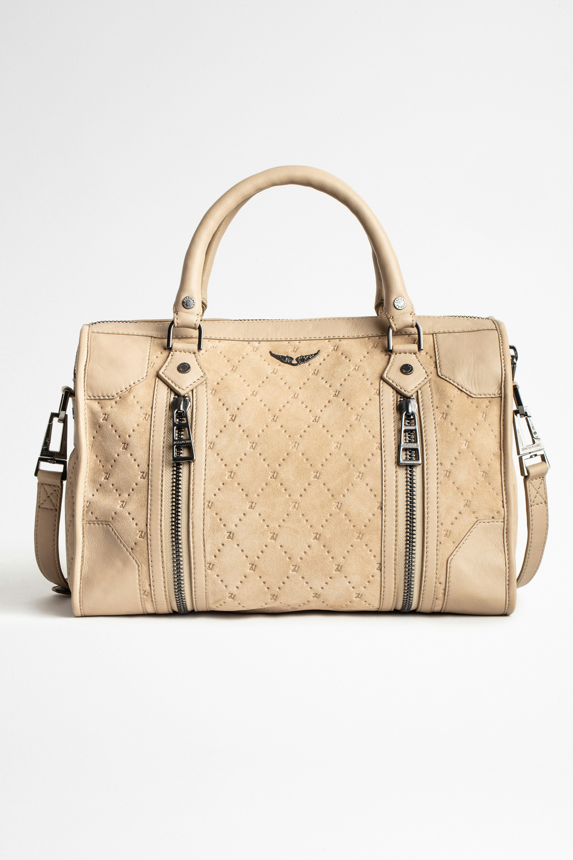 Sac taupe femme en cuir suédé Zadig&Voltaire, modèle iconique, structuré et fonctionnel, porté main, épaule ou croisé, bandoulière réglable et amovible, deux soufflets zippés permettant d’agrandir le sac, poche plaquée et poche zippée à l’intérieur. Embossage ZV sur l'ensemble du modèle.