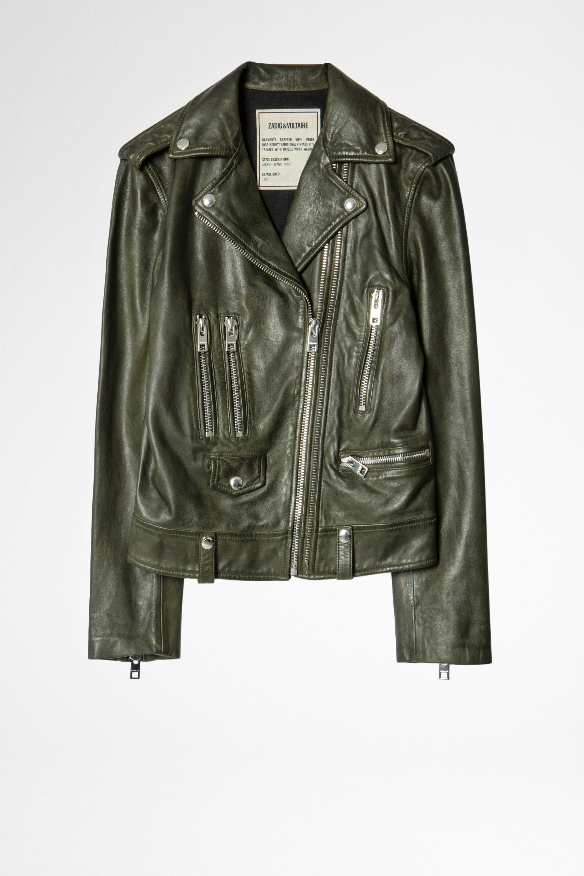 Veste perfecto kaki en cuir d'agneau femme Zadig&Votlaire.