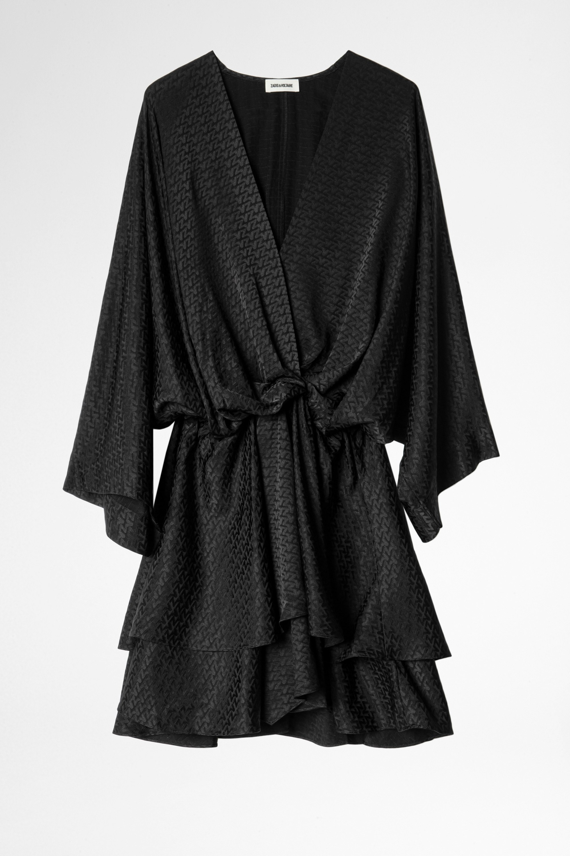 Robe noire femme, courte, en soie jacquard.Voir plus